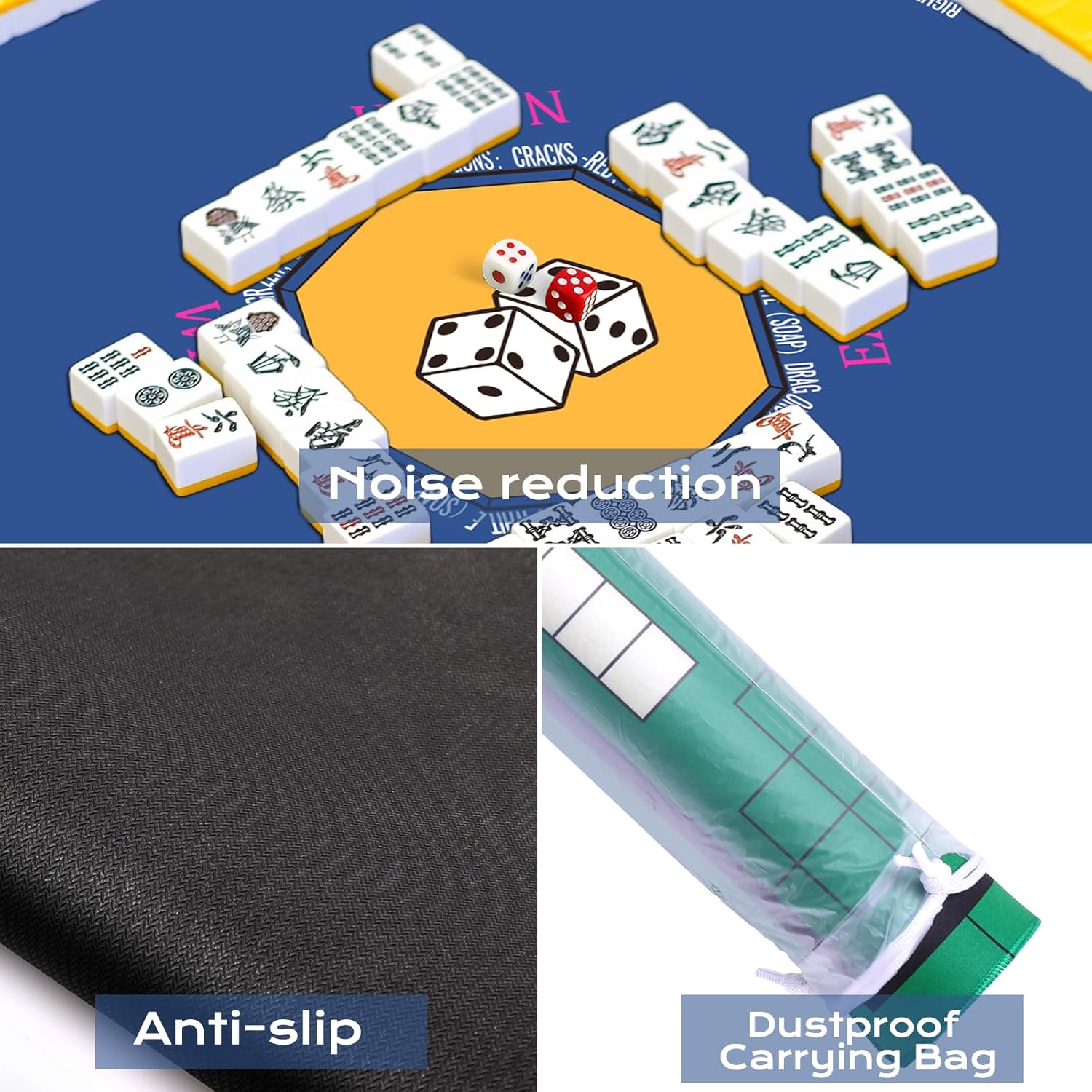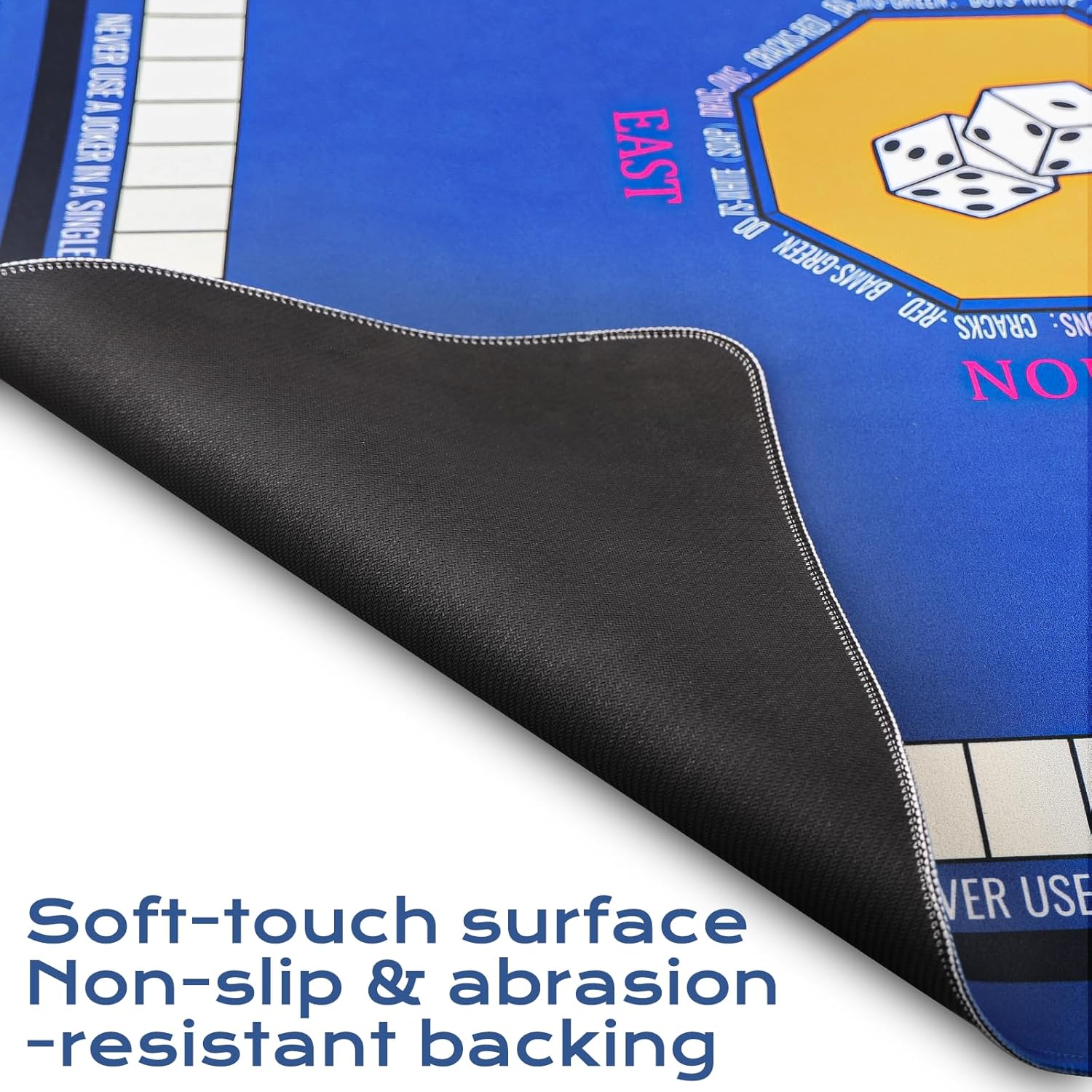 - ✅SPACIOUS SQUARE DESIGN WITH RULE GUIDE: Measuring 31.5" x 31.5" (80cm x 80cm), this Nine-Marsh mahjong mat with rules accommodates 4 players comfortably. The deep blue surface is subtly printed with essential gameplay guidelines, perfect for quick reference during casual home matches.