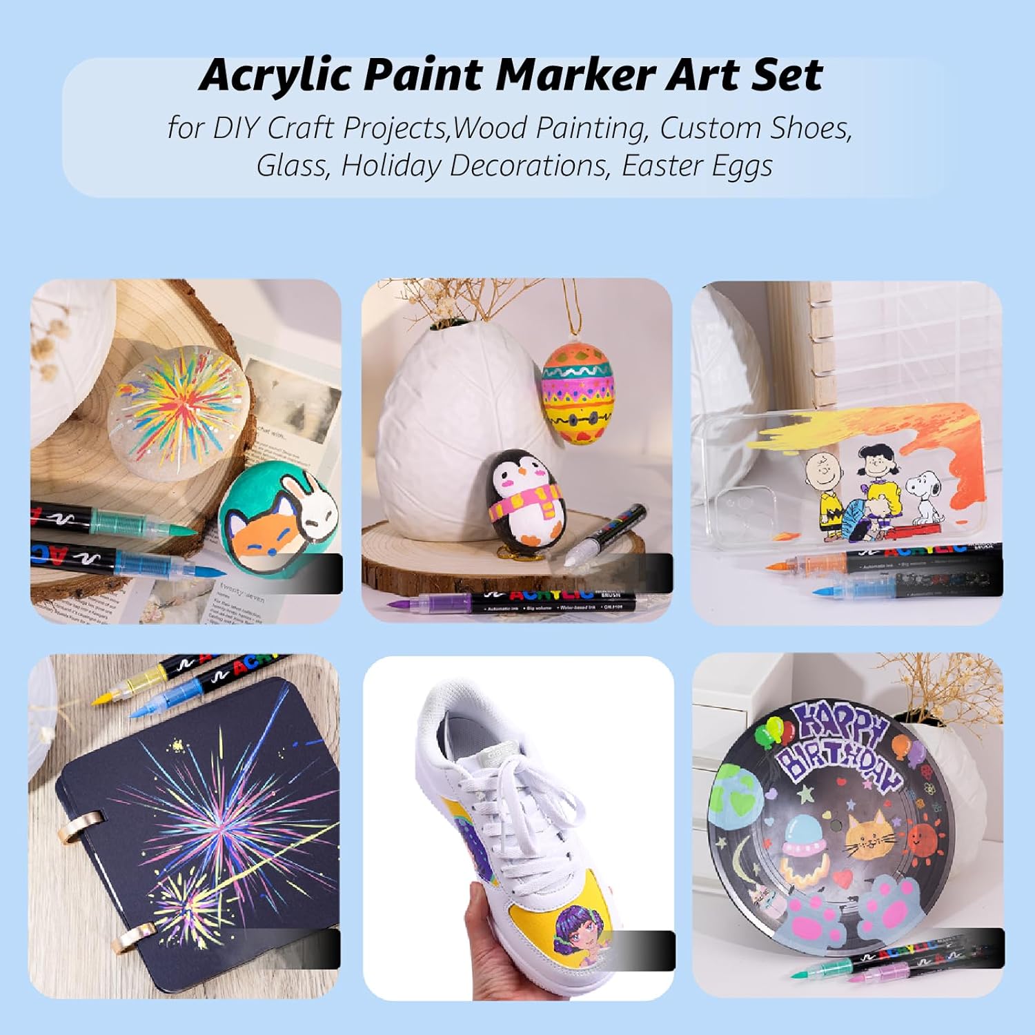- VERSATILE SET: 36 vibrant acrylic paint markers perfect for multiple surfaces including canvas, glass, wood, paper, rock, and ceramic materials