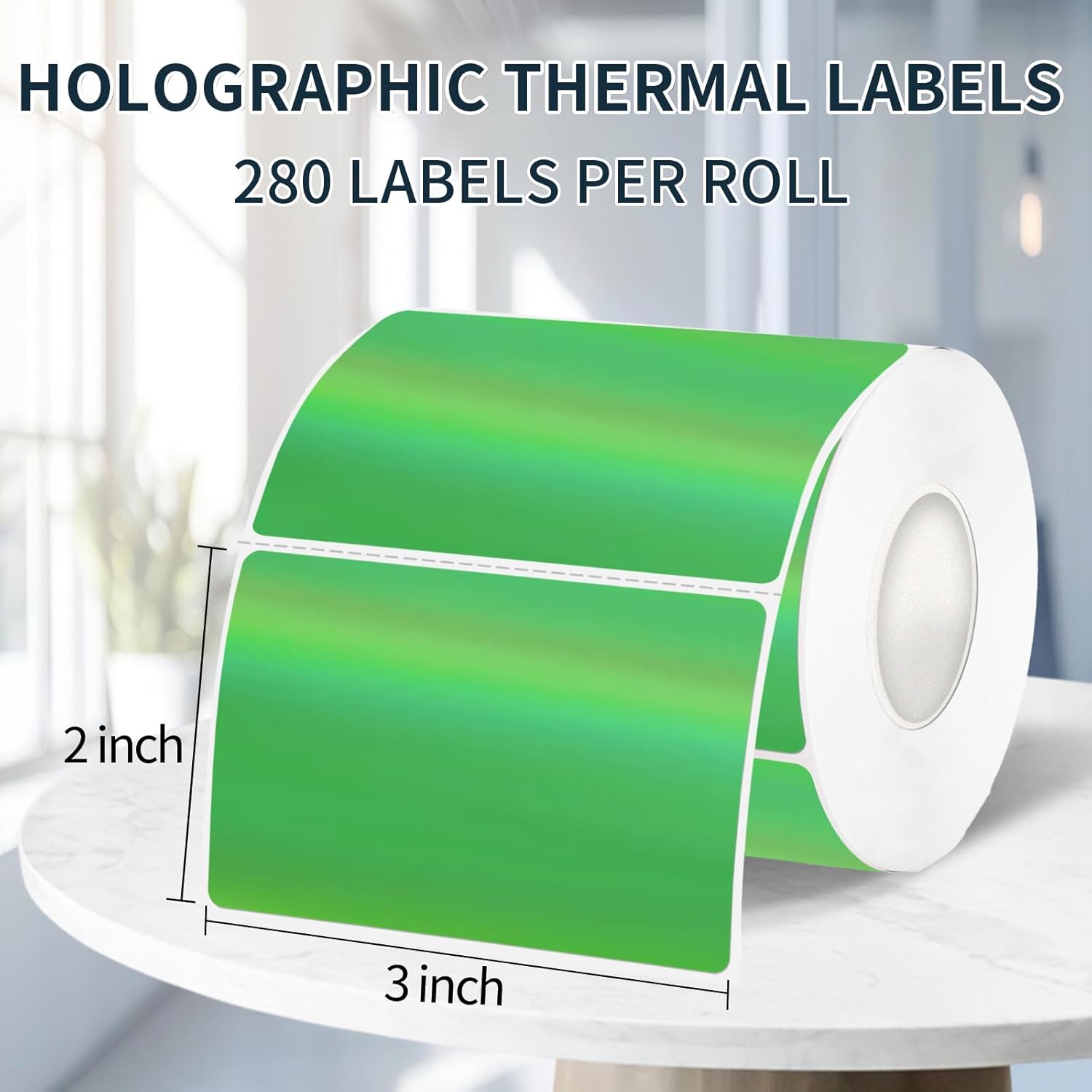 2" x 3" Holographic Thermal Label Stickers Green,Printable Rainbow Glitter Thermal Printer Sticker Labels for Gift Wrapping, Self-Adhesive Name Price Tag DIY Custom Logo Design (280 pcs)