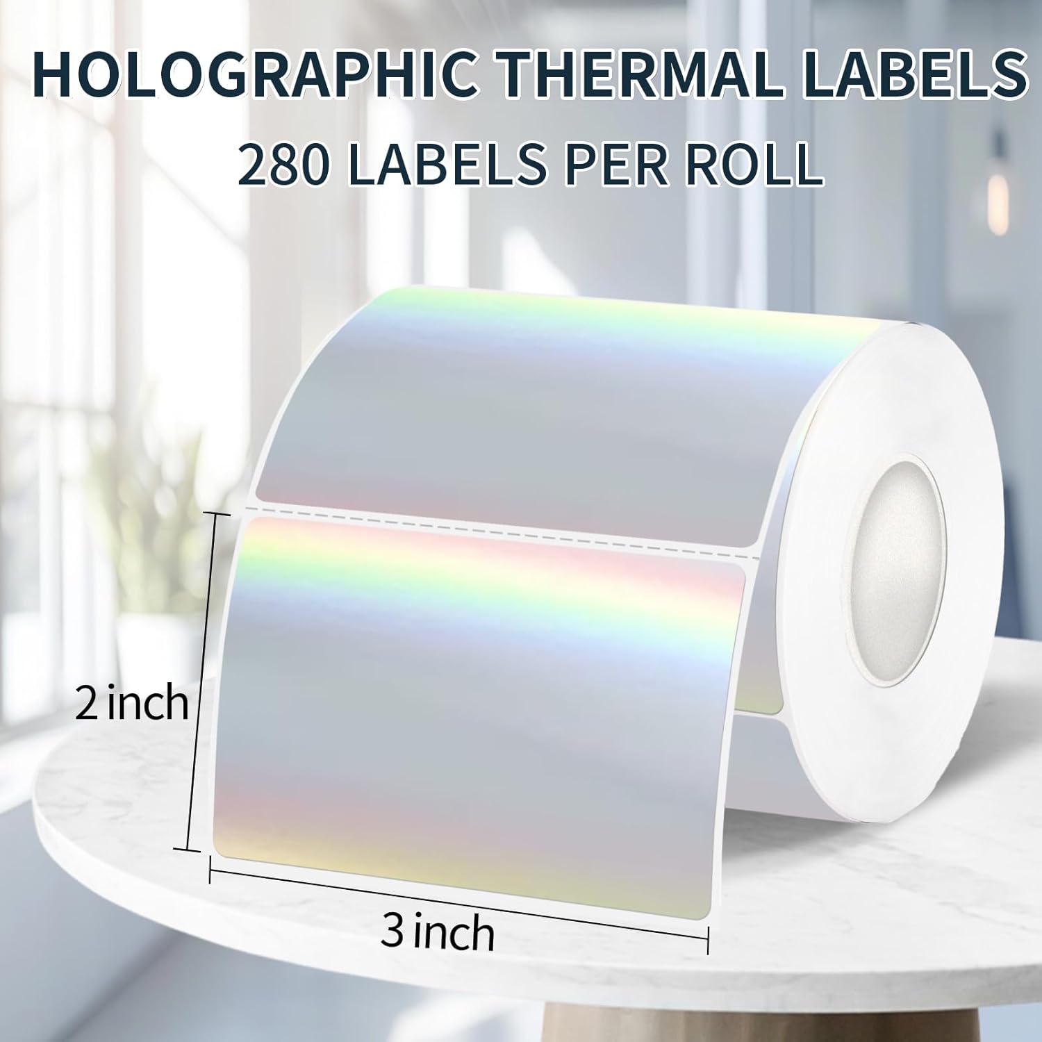 2" x 3" Holographic Thermal Label Stickers,Printable Rainbow Glitter Thermal Printer Sticker Labels for Gift Wrapping, Self-Adhesive Name Price Tag DIY Custom Logo Design (280 pcs)