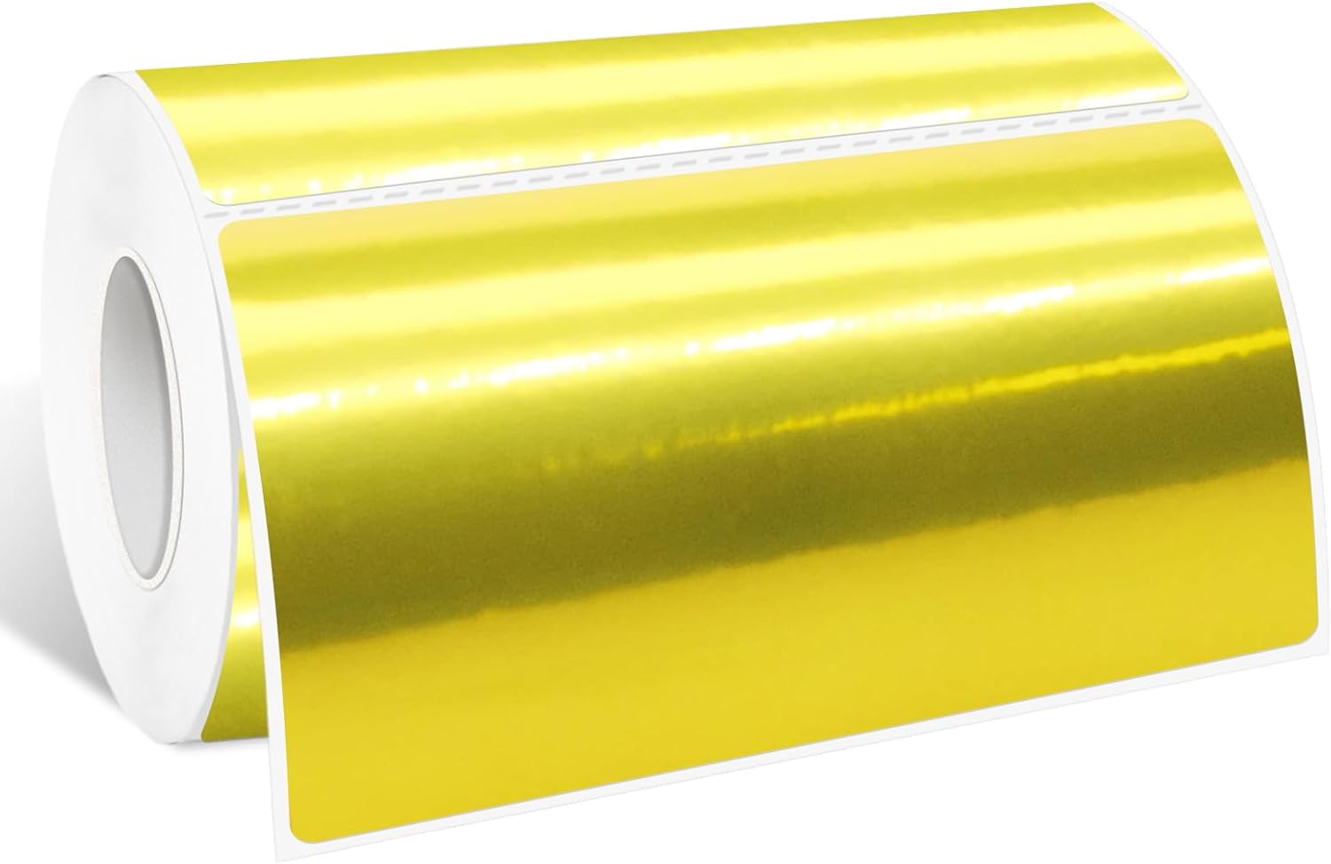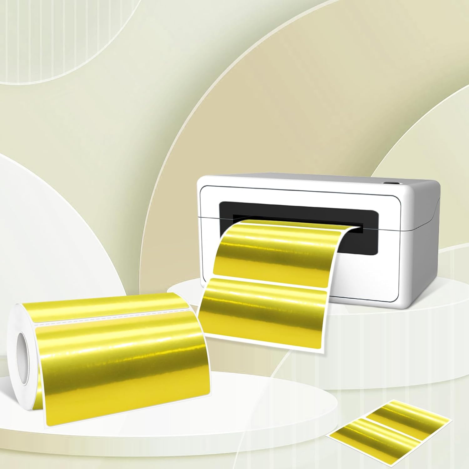 2" x 4" Gold Thermal Label Stickers,Waterproof Thermal Printer Sticker Labels for Gift Wrapping, Self-Adhesive Name Price Tag DIY Custom Logo Design (250 pcs,Gold)