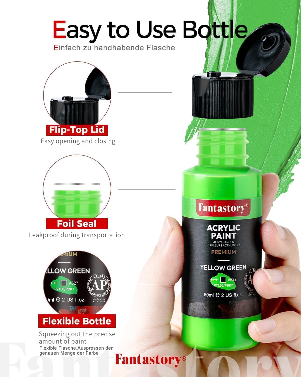 - 🎨PERFECT GIFT CRAFT PAINT- Each of our acrylic paint bottles is safe, non-toxic and has professional quality so it can be rich gift for adults, for both beginners and artists with great experience in arts. Adults love the versatility of our waterproof acrylic paint set. Fantastory acrylic paint sets with exquisite packging box will be a great gift idea at Christmas, Halloween, Birthday and more festivals.