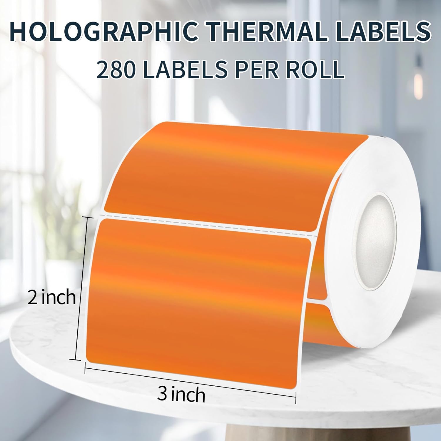 2" x 3" Holographic Thermal Label Stickers Orange,Printable Rainbow Glitter Thermal Printer Sticker Labels for Gift Wrapping, Self-Adhesive Name Price Tag DIY Custom Logo Design (280 pcs)