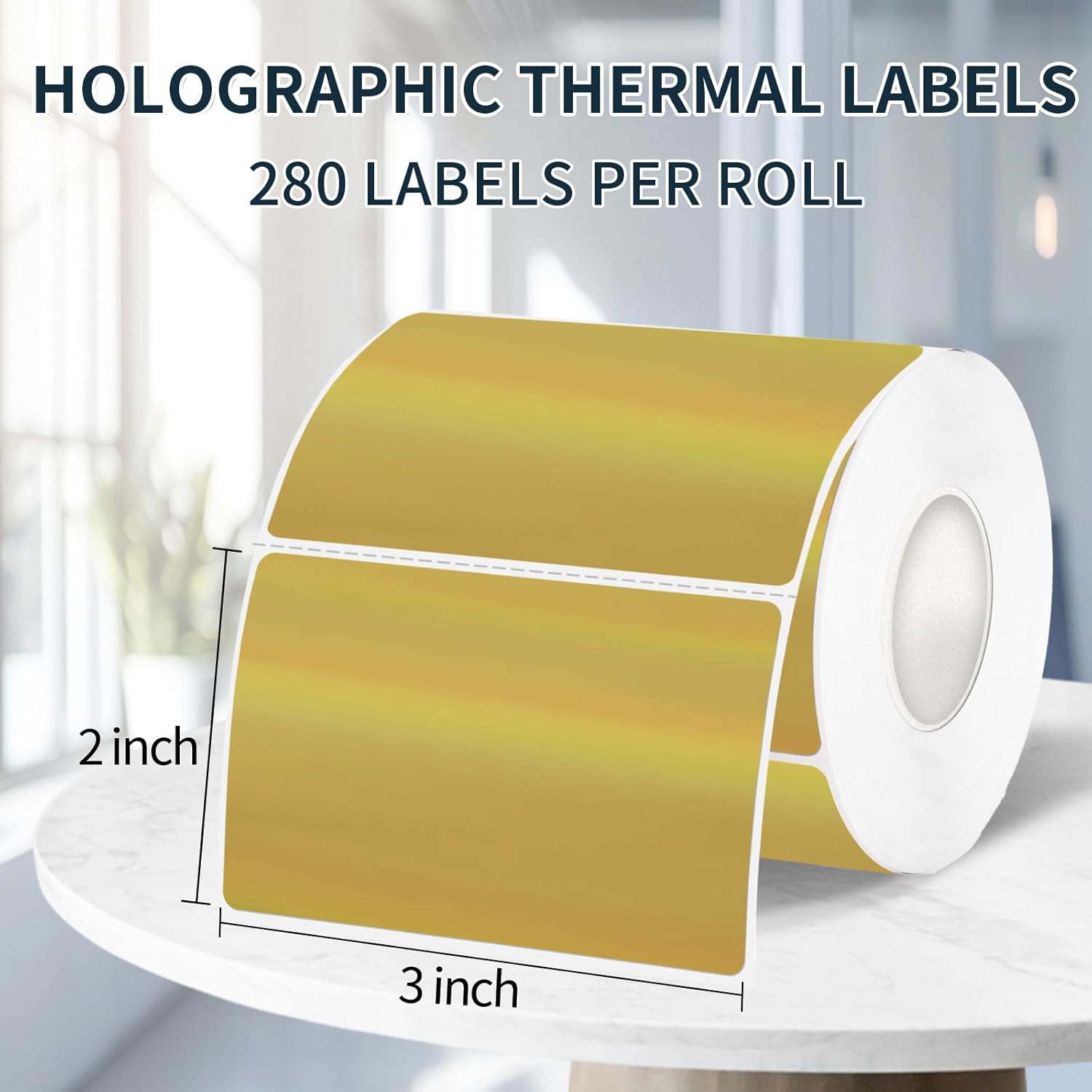 2" x 3" Holographic Thermal Label Stickers Brown,Printable Rainbow Glitter Thermal Printer Sticker Labels for Gift Wrapping, Self-Adhesive Name Price Tag DIY Custom Logo Design (280 pcs)