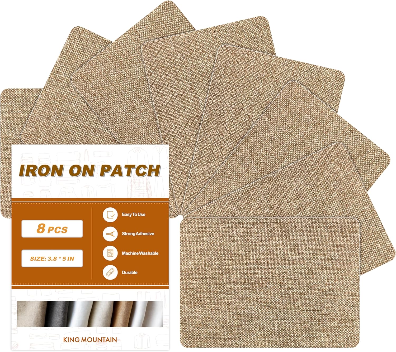 Iron on Patches, 8 Pieces Iron on Linen Patches,Fabric Patches for Couch, Tent, Clothing, Seat, Linen Repair Decorating Kit 3.7" by 4.9" (9.5 cm x 12.5 cm, Rice Coffee)