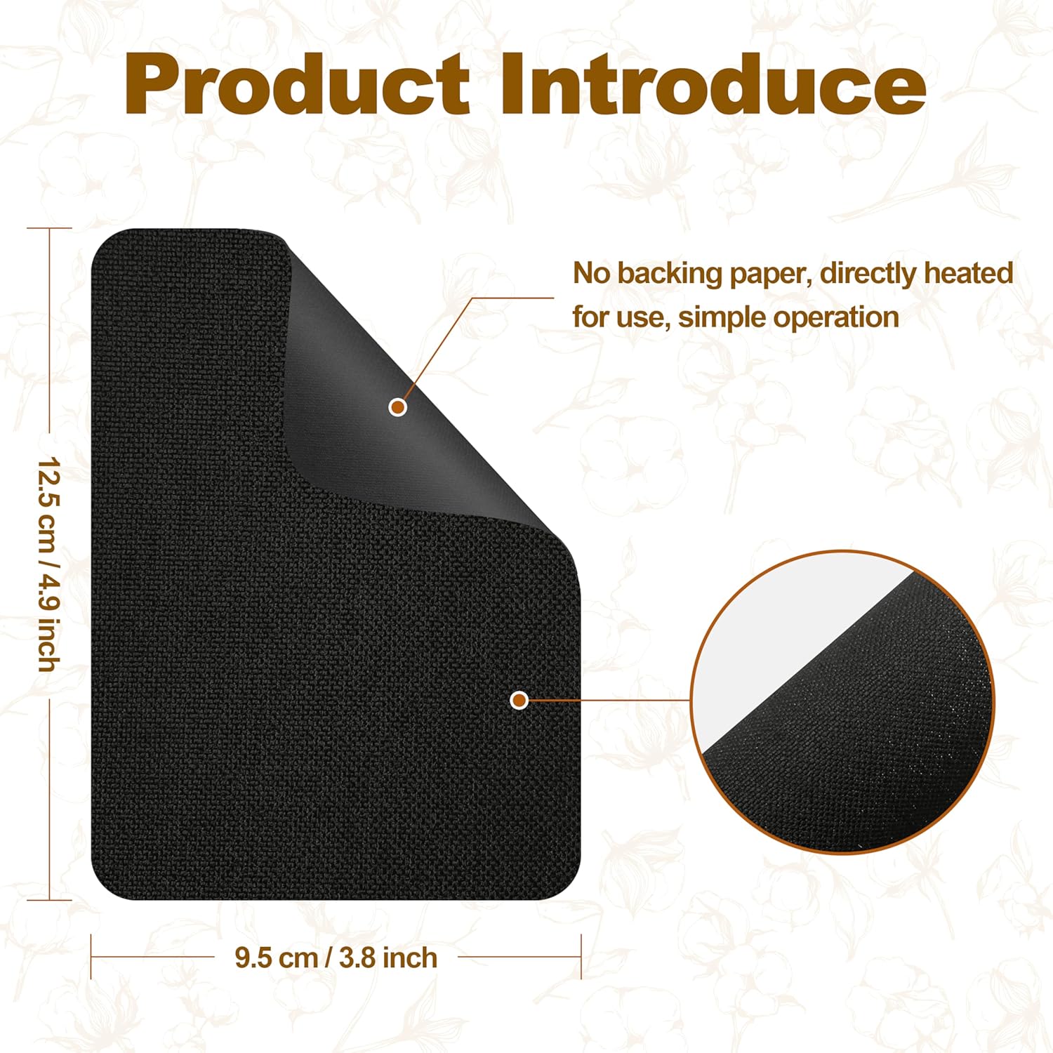 Iron on Patches, 8 Pieces Iron on Linen Patches, Fabric Patches for Couch, Tent, Clothing, Seat, Linen Repair Decorating Kit 3.7" by 4.9" (9.5 cm x 12.5 cm, Black)
