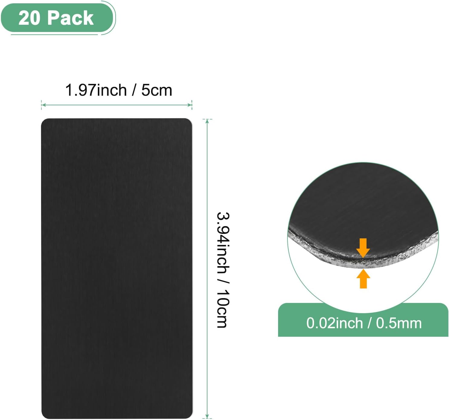 - [Size & Package] - 20-Pack x Blank Anodized Aluminum Sheets; Material: Anodized Aluminum Plates; Color: Black; Size:10x5cm/3.94x1.97 Inch(L*W); Thickness: 0.5mm/0.02 Inch