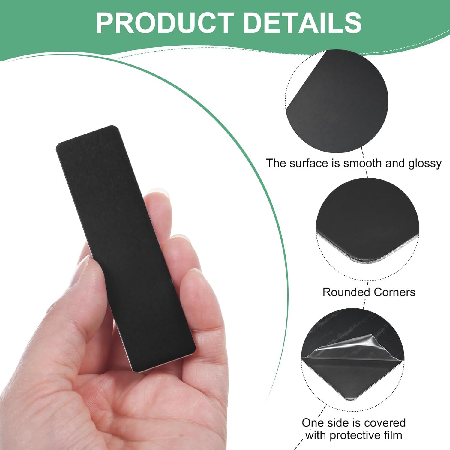 - [Size & Package] - 20-Pack x Blank Anodized Aluminum Sheets; Material: Anodized Aluminum Plates; Color: Black; Size:8x2.2cm/3.15x0.87 Inch(L*W); Thickness: 0.5mm/0.02 Inch