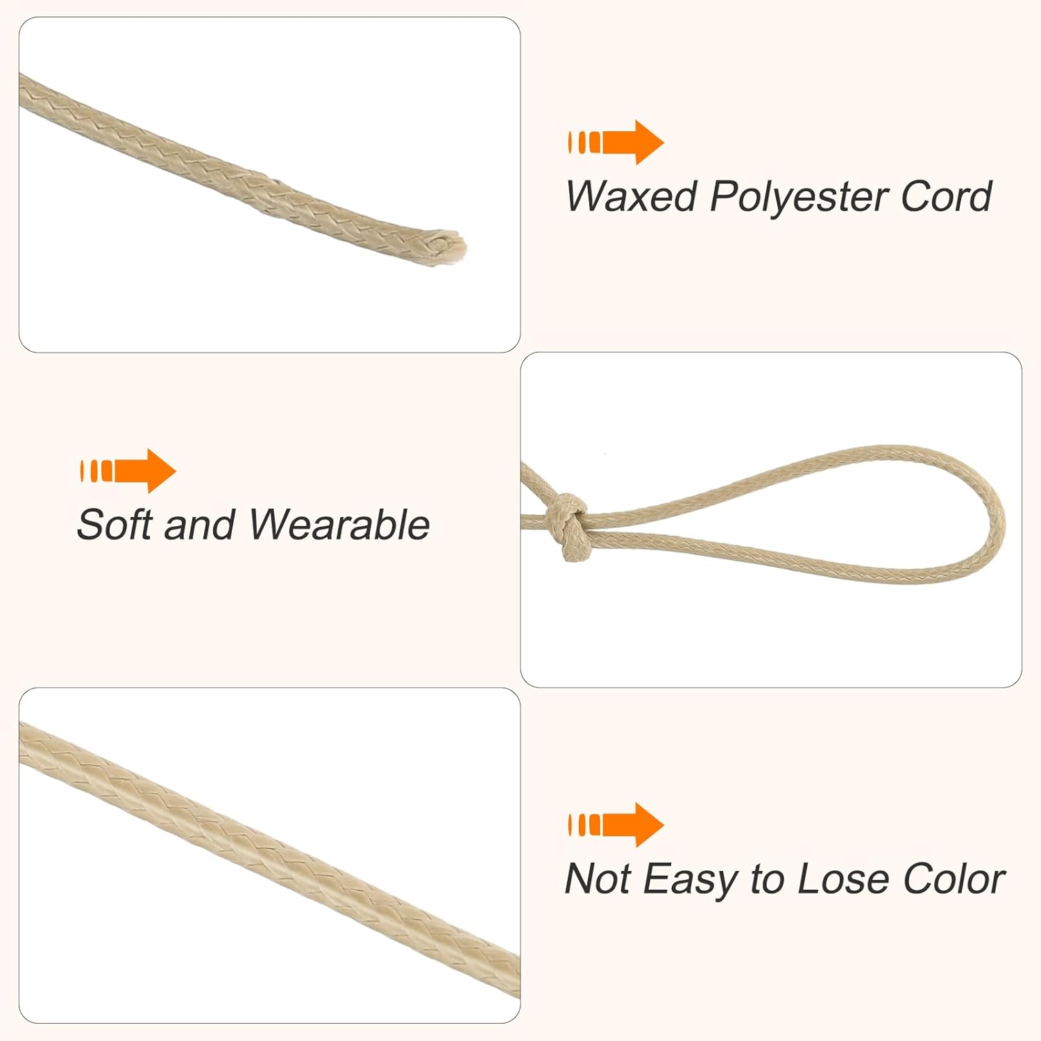 MECCANIXITY Waxed Cord 2.5mm Waxed Polyester Cord 87 Yard Wax String for Bracelet Making, Necklaces, Beading, Jewelry Making and DIY Crafts(Khaki)