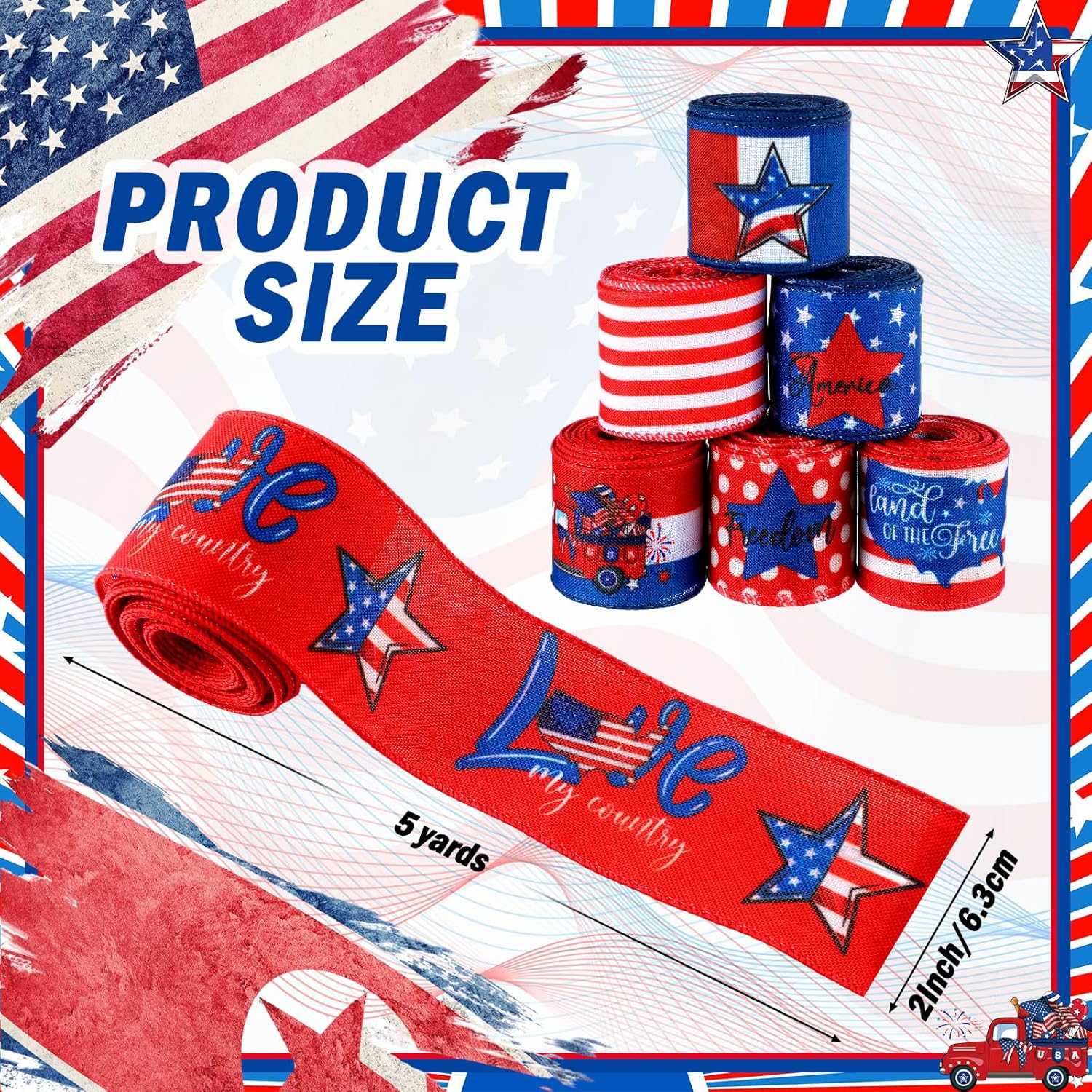 - Ample Quantity and Ideal Size: crafted to meet your decoration needs, our 4th of July ribbon comes in a set of 12 rolls, providing ample supply for all your needs; Each roll is approximately 5 yards long and 2 inches wide, providing you with ample ribbon to create beautiful Independence Day crafts and decorations