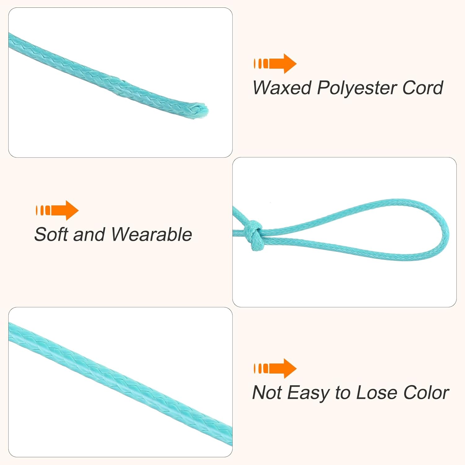 MECCANIXITY Waxed Cord 2.5mm Waxed Polyester Cord 87 Yard Wax String for Bracelet Making, Necklaces, Beading, Jewelry Making and DIY Crafts(Lake Blue)