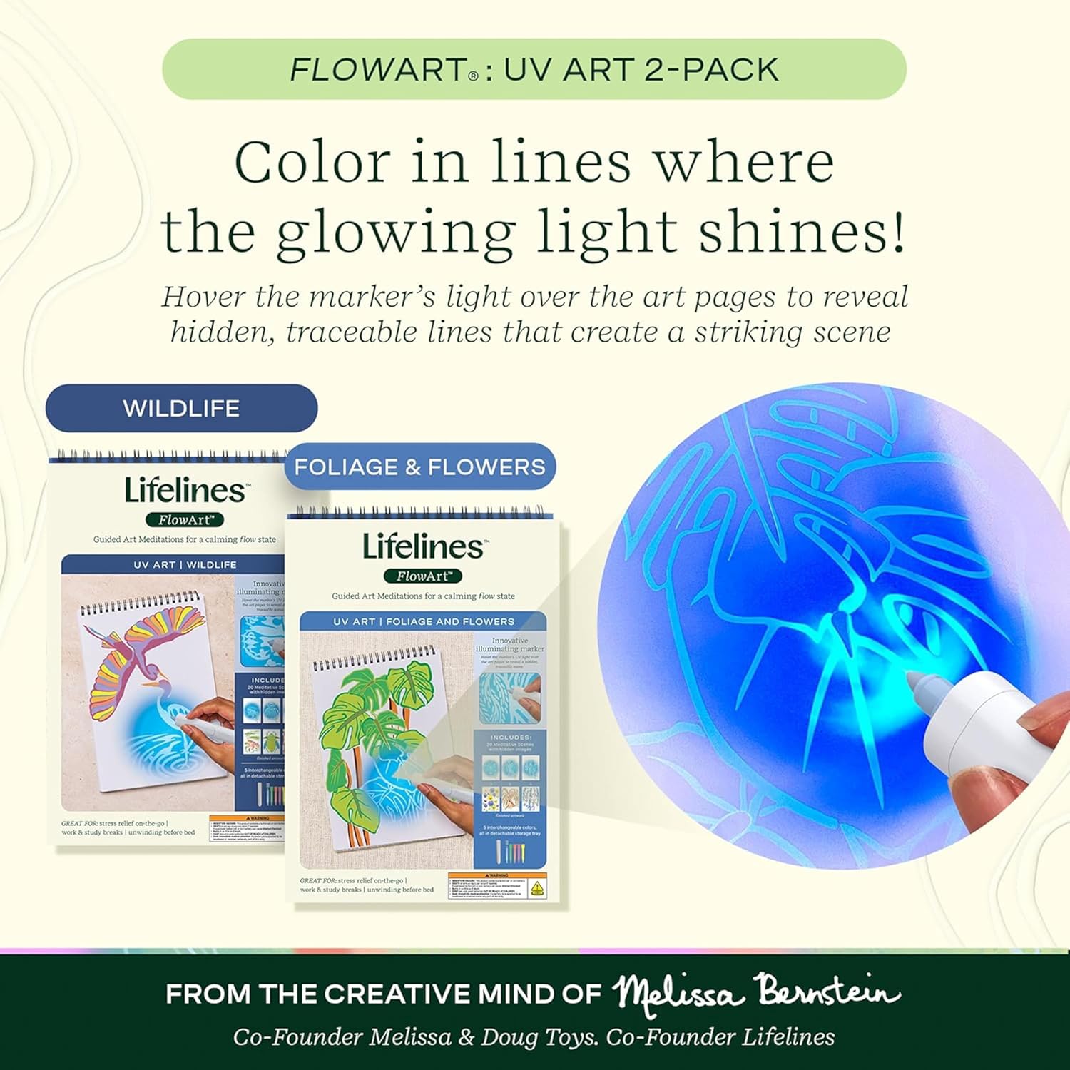 Lifelines FlowArt Activity Pad, UV Art 2-Pack - Guided Art Meditations with Illuminating Marker - Color by UV Light Coloring Books for Teens, Adults & Seniors