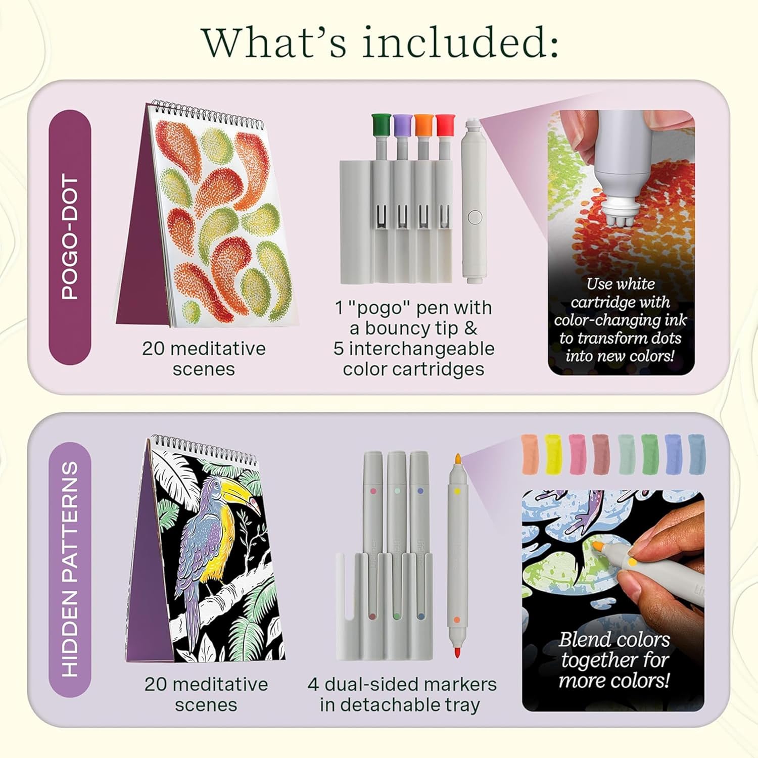 - PATENT PENDING, INNOVATIVE ACTIVITY PADS: Get into a calming flow state. This Lifelines FlowArt 4-Pack includes Dot-By-Letter, Hidden Patterns, Pogo-Dot, and UV Art activity pads. Each pad includes 20 meditative scenes and a set of unique markers in a detachable storage tray.