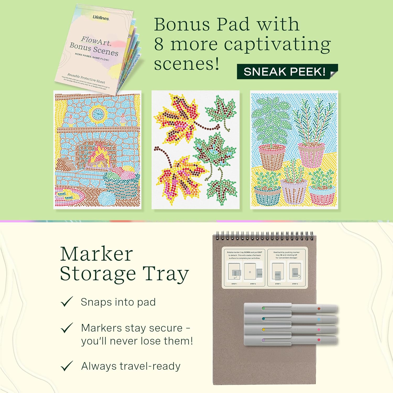 - Bonus FlowArt Activity Pad: Pack includes a bonus activity pad with 8 additional scenes for even more calm whenever you need it. Find your flow during work and study breaks, unwinding before bed, or well-being on-the-go.