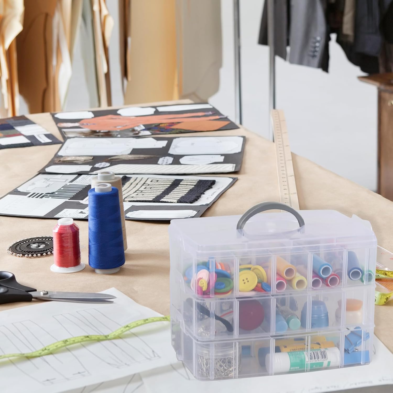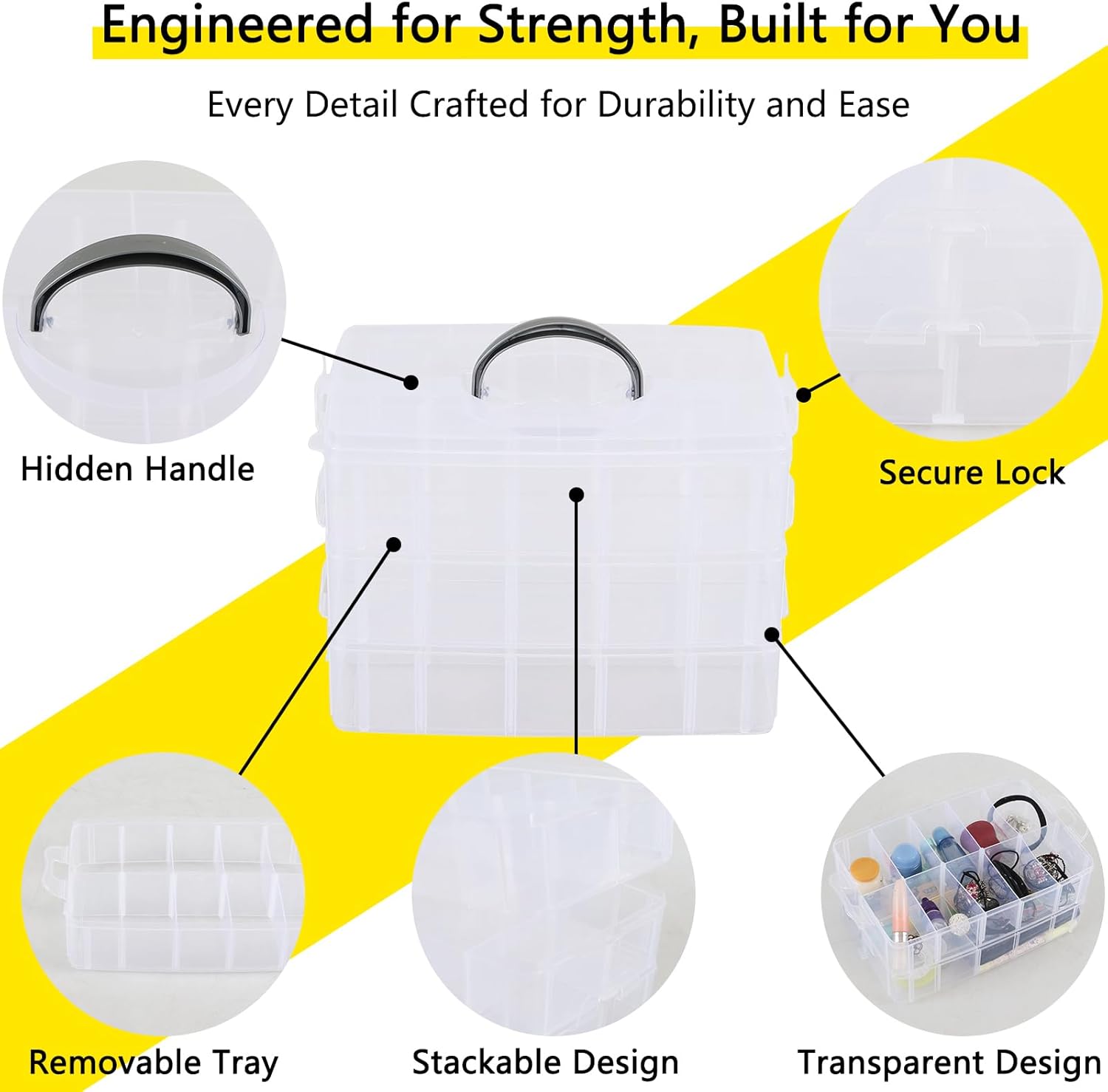 30 Grids Clear Plastic Organizer Box with Dividers, 3 Tier Stackable Compartment Storage Container for Crafts, Art DIY, Jewelry