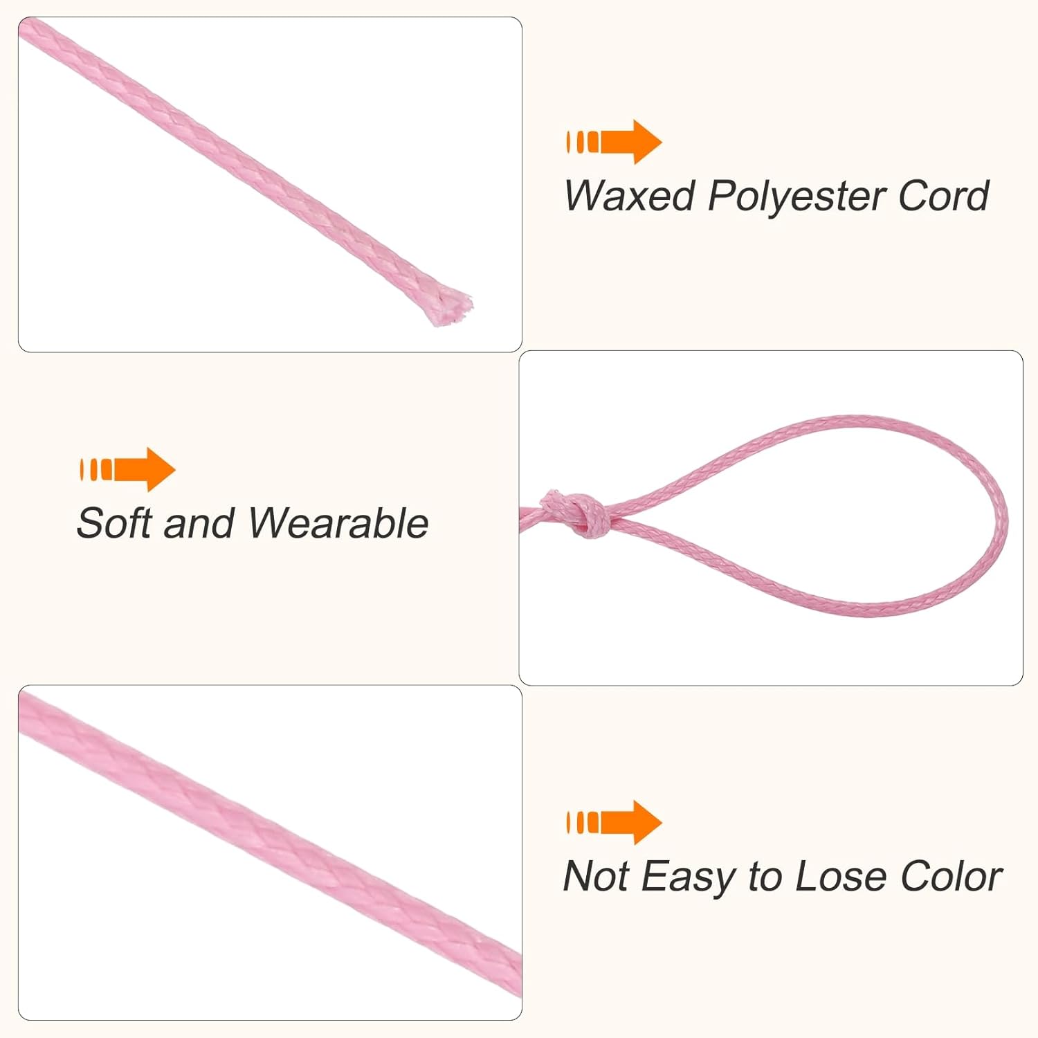 - This waxed ropes has bright and beautiful color,easily knotted and braided, you can use this waxed cotton thread to make bracelets, jewelry, friendship bracelets, macramé rope projects, packaging, leather sewing, scrapbooking, leather working, beading, and more. It is an important raw material for jewelry making and DIY crafting.