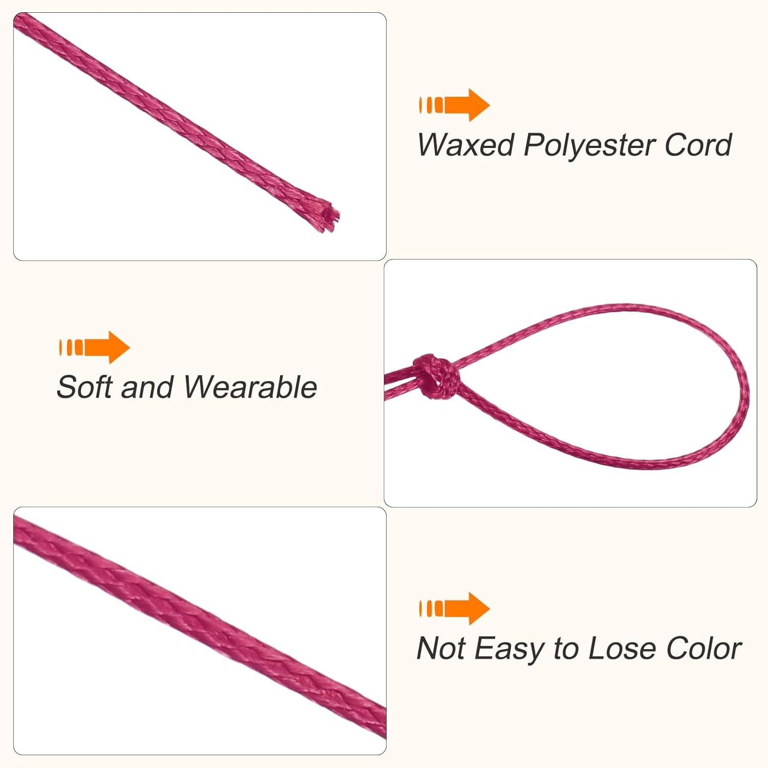 - This waxed ropes has bright and beautiful color,easily knotted and braided, you can use this waxed cotton thread to make bracelets, jewelry, friendship bracelets, macramé rope projects, packaging, leather sewing, scrapbooking, leather working, beading, and more. It is an important raw material for jewelry making and DIY crafting.