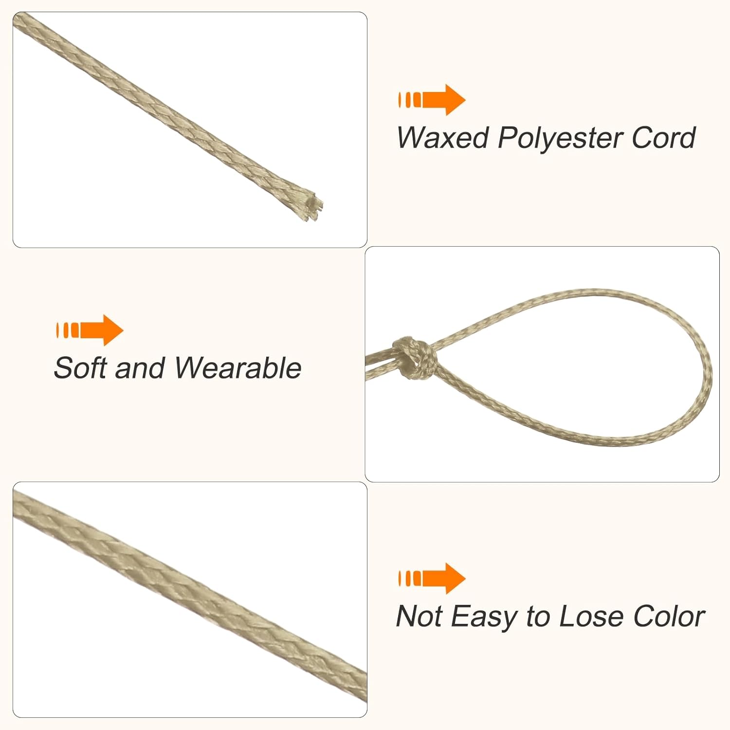 MECCANIXITY Waxed Cord 0.5mm Waxed Polyester Cord 175 Yard Wax String for Bracelet Making, Necklaces, Beading, Jewelry Making and DIY Crafts(Khaki)