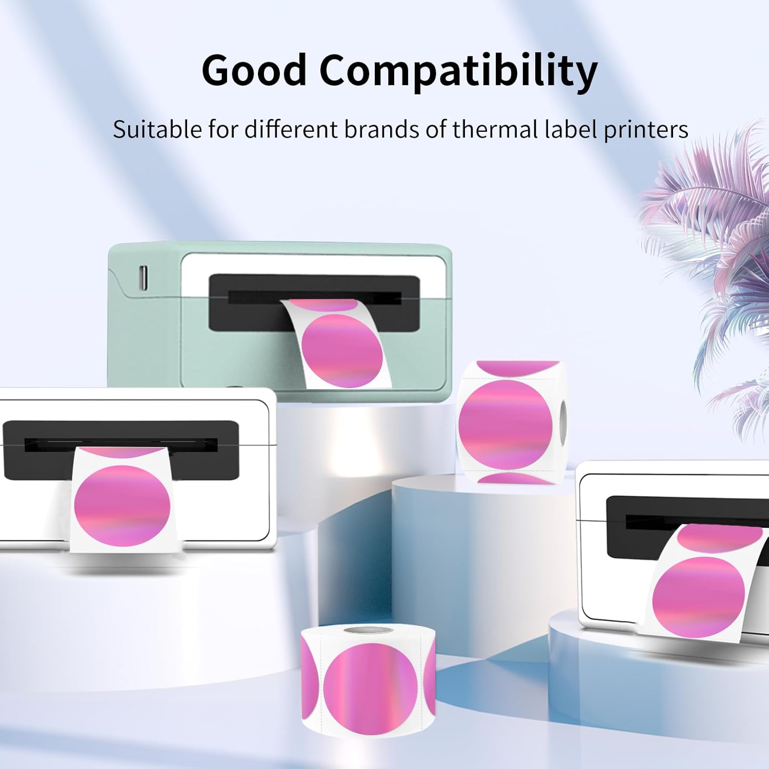 - Package: Circle Holographic Pink Thermal Sticker Labels 1.5", 350 Labels/Roll. It’s printable with a thermal printer, No ink toner or ribbons are needed