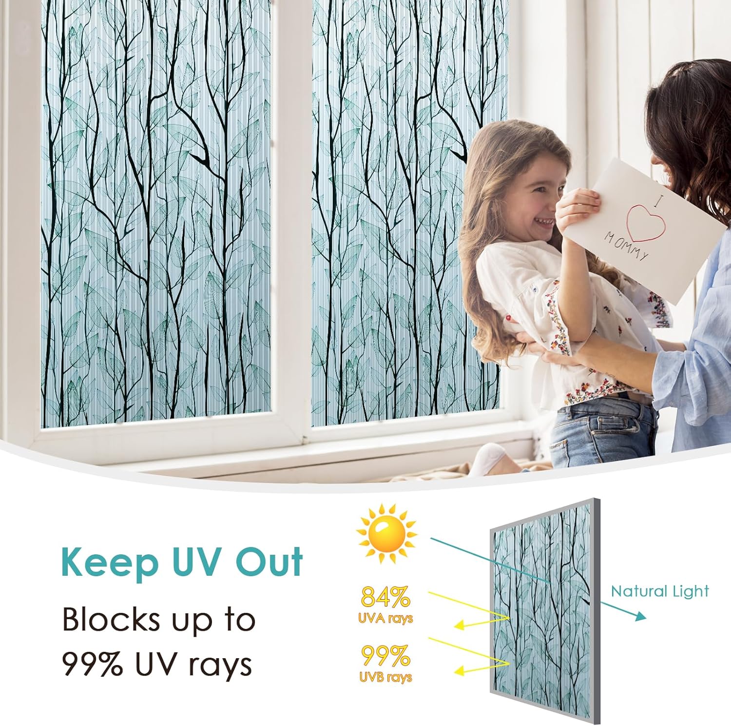 DKTIE Nature Pattern Rainbow Window Film Decorative Stained Glass Window Film Static Cling Films Easy Apply Removable Comes with Tools (U1747-Reeded Glass, 17.7" x 78.7")
