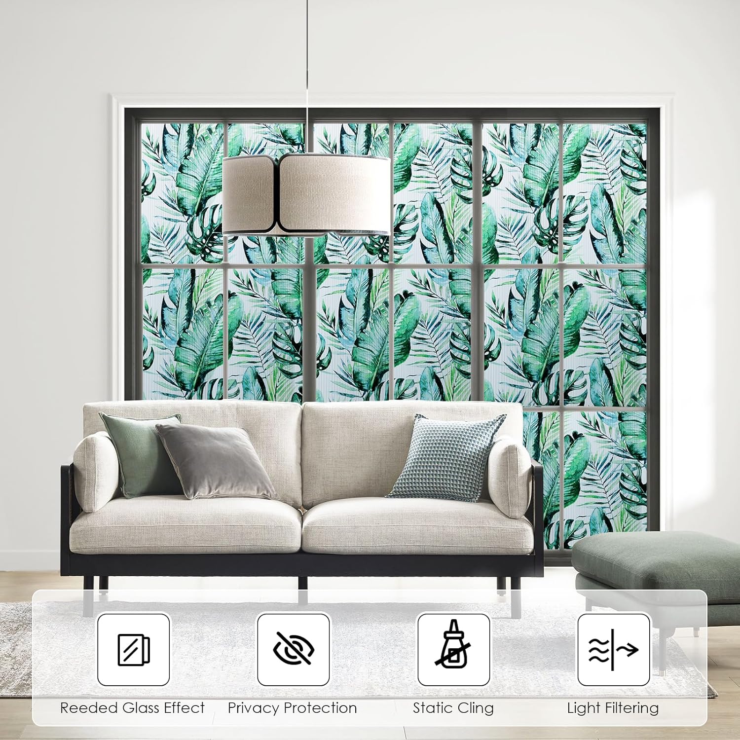 DKTIE Nature Pattern Rainbow Window Film Decorative Stained Glass Window Film Static Cling Films Easy Apply Removable Comes with Tools (U560-Reeded Glass, 17.7" x 78.7")