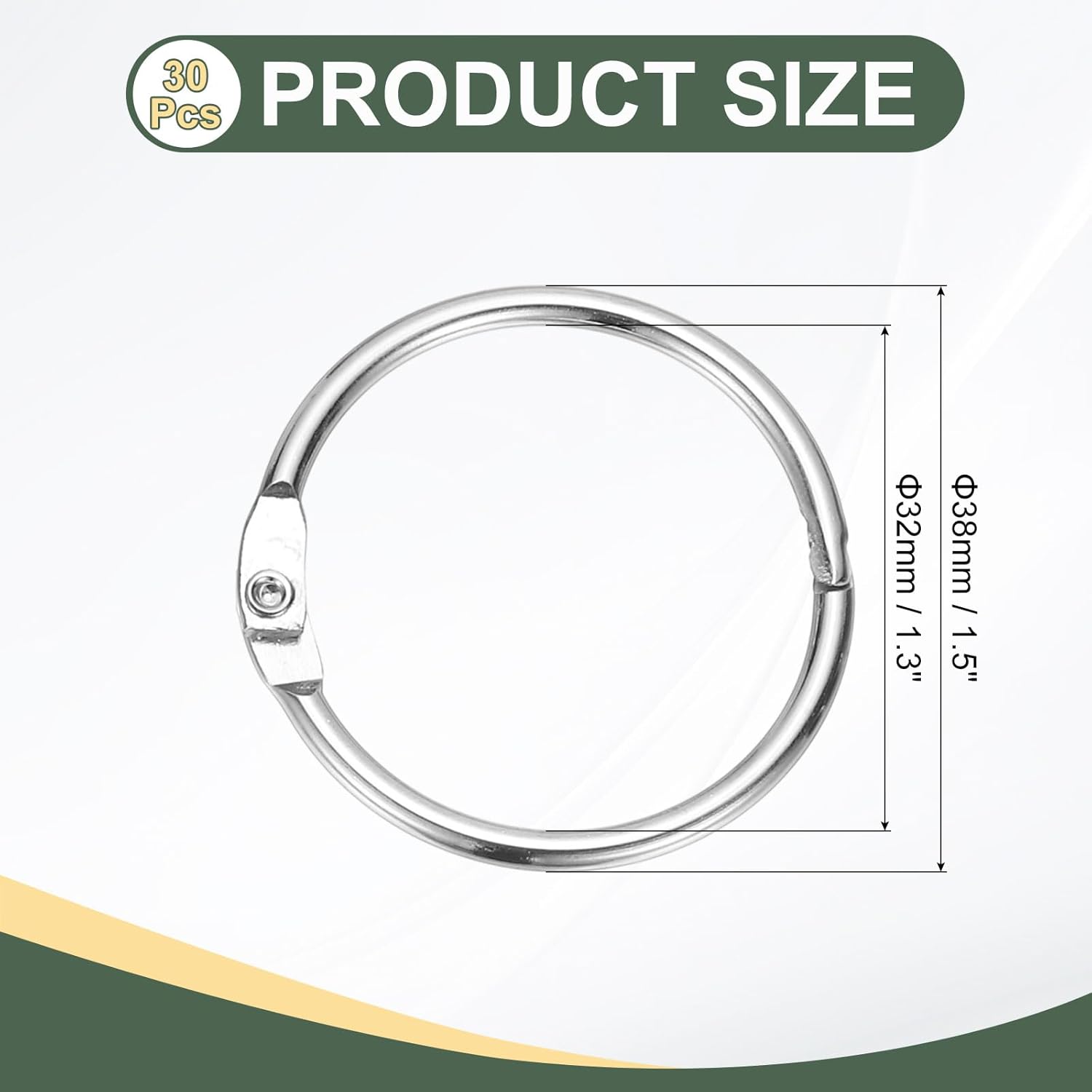 - Color: Silver Tone; Material: Steel; Size: 1.3" x 1.5"/32mm x 38mm(ID*OD); Packing List: 30 x Rings for Paper