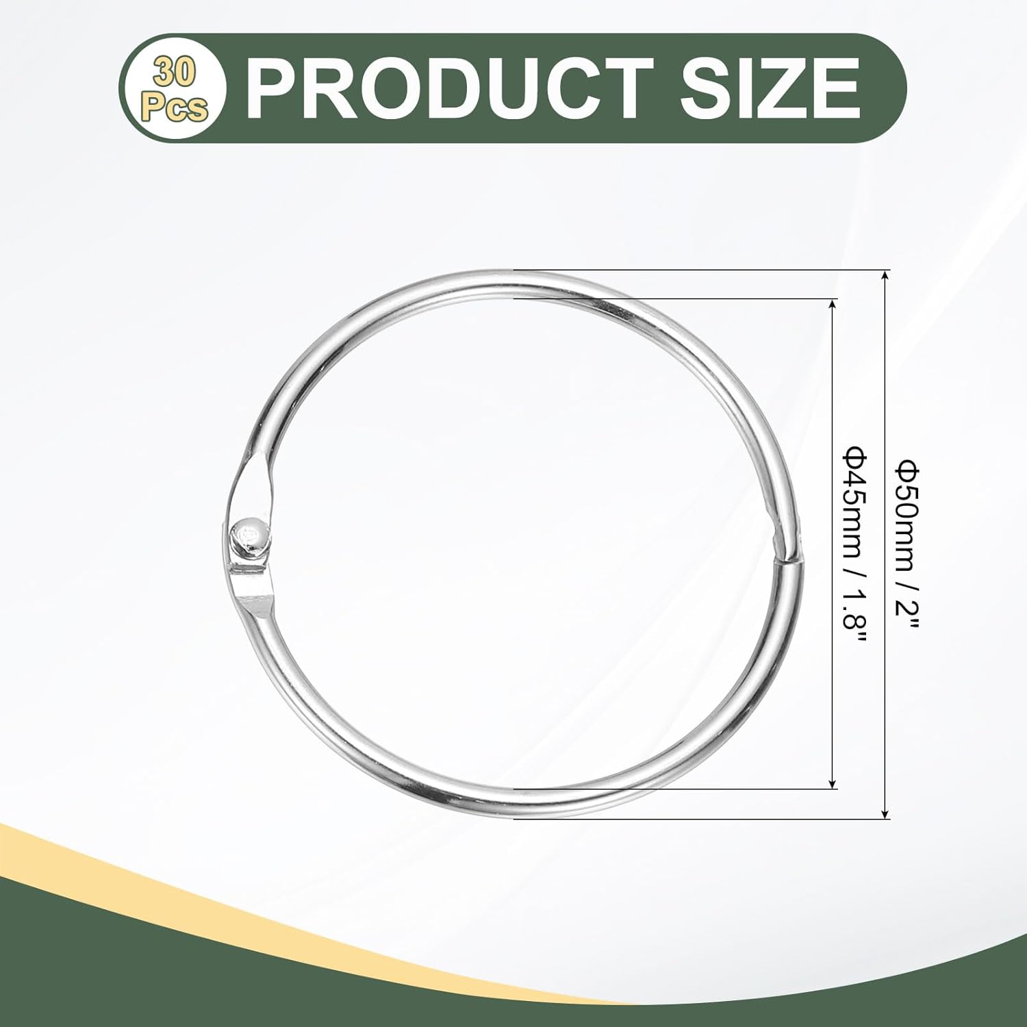 - Color: Silver Tone; Material: Steel; Size: 1.8" x 2"/45mm x 50mm(ID*OD); Packing List: 30 x Rings for Paper