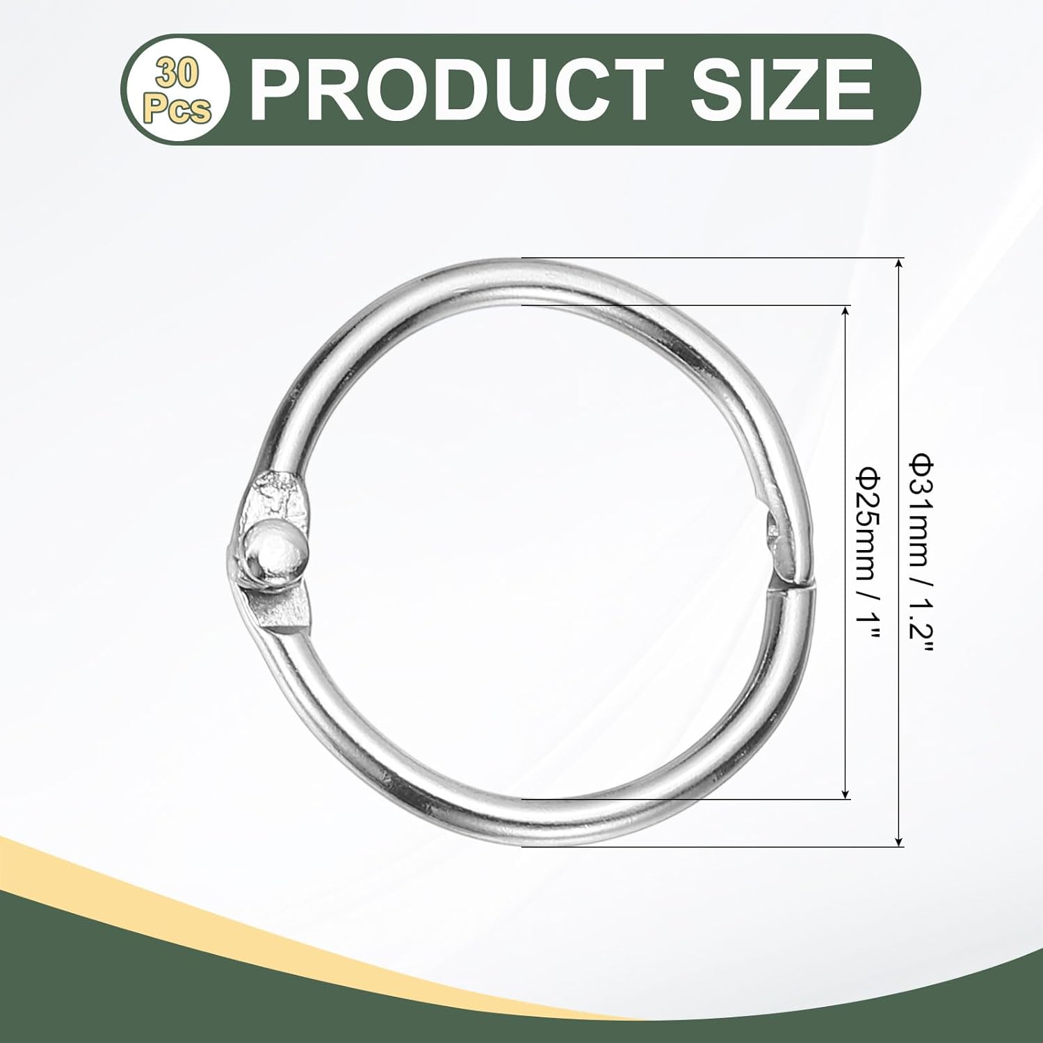 PATIKIL 1" x 1.22" Loose Leaf Binder Rings, 30 Pcs Metal Book Rings Nickel Keychain Ring for Paper Index Cards Flash Card Notebook Rings Office Home Book Binder, Silver Tone