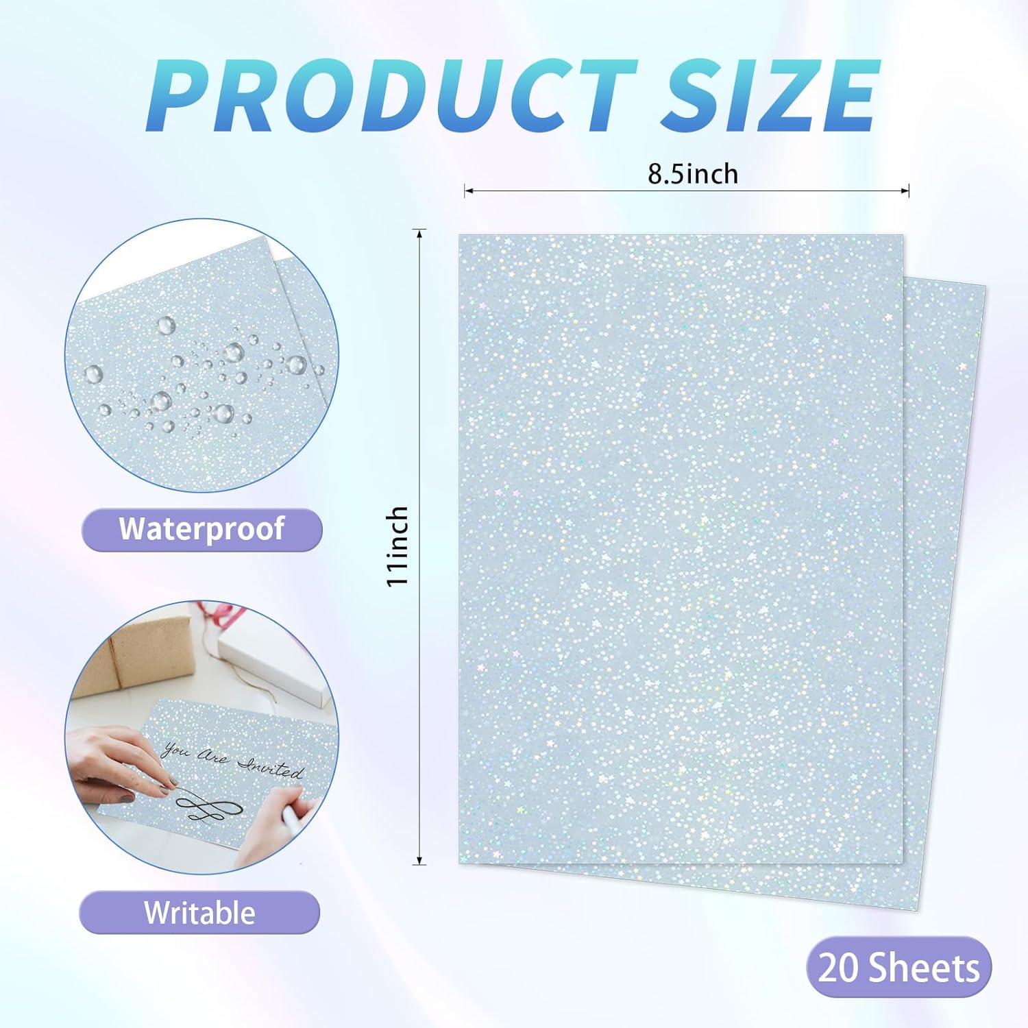 Printable Holographic Sticker Paper,20 Sheets 11 x 8.5''five-pointed star Printable Waterproof Sticker,Rainbow Vinyl Sticker for Inkjet or Laser Printer