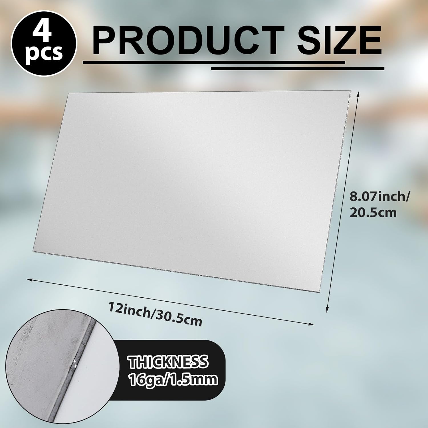 4 Pcs 12 x 8 in Mild Steel Sheet Metal Cold Rolled 16 Gauge 0.06 in (1.5mm) Thick Weldable Metal Carbon Plate Square Panels for Outside Industrial DIY Use Projects Weld Accessories