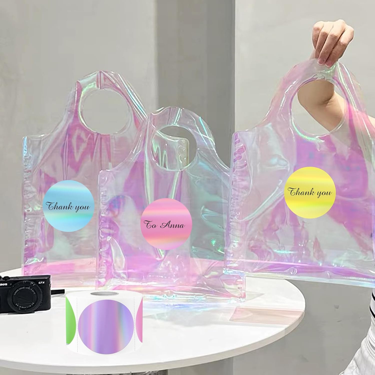 - Holographic Thermal Sticker Labels: Printed on rainbow metallic vinyl, the color of the surface of the sticker can be changed under the light with the move, which is beautiful and charming! Our holographic stickers offer an amazing visual experience like and leave a remarkable impression