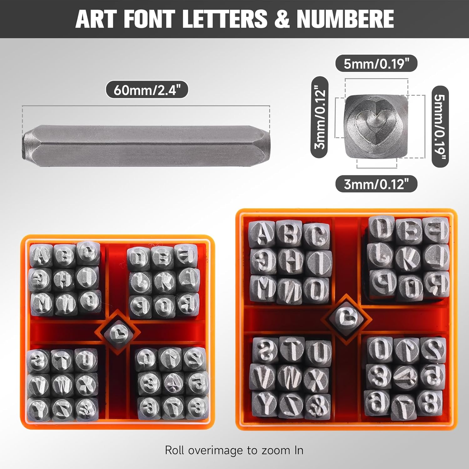 - METAL STAMPING KIT:Metal stamping set include "A-Z" letters,"0-9" numbers,(Reverse “6” can be used as “9”),"&",and heart symbol punching,enough to meet your personalized needs