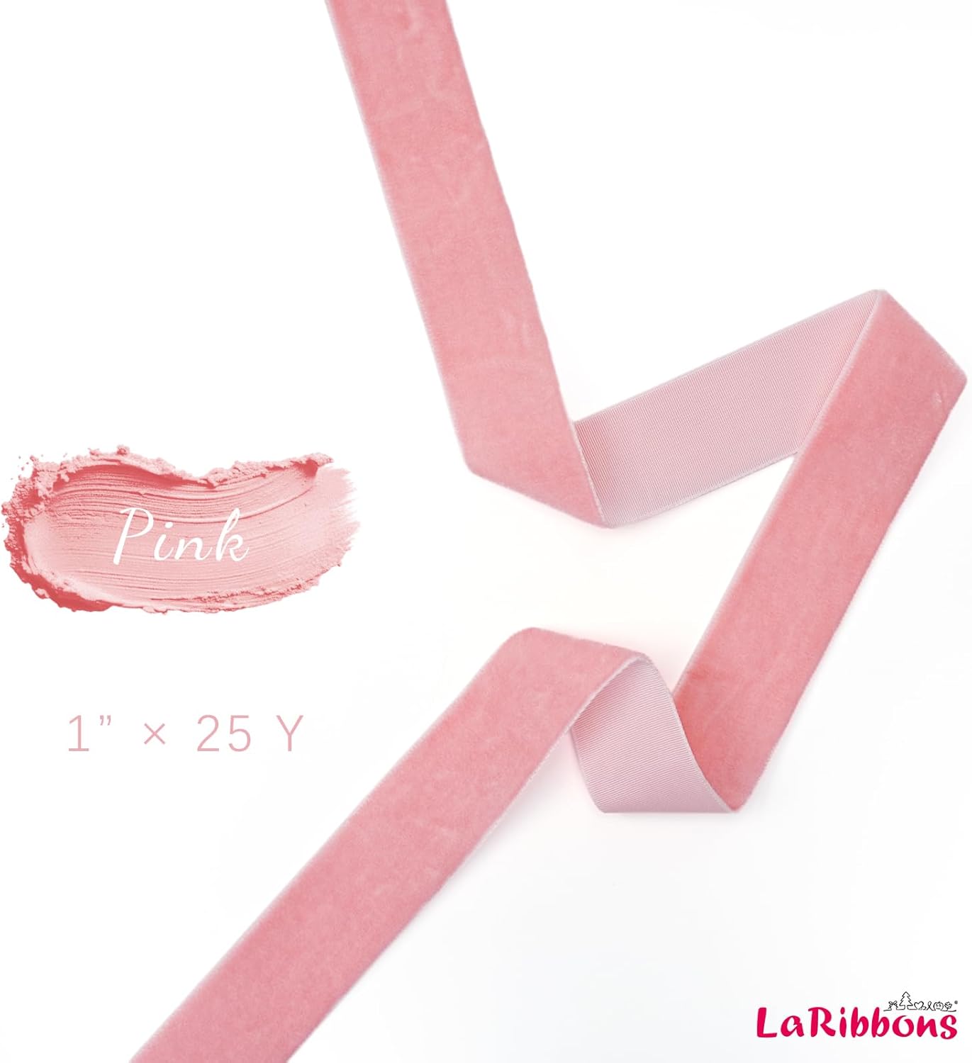 LaRibbons Thin Velvet Ribbon 1 Inch x 25 Yards, Pink Velvet Ribbon for Christmas Tree, Gift Wrapping, Wreath Bow, Outdoor Decoration