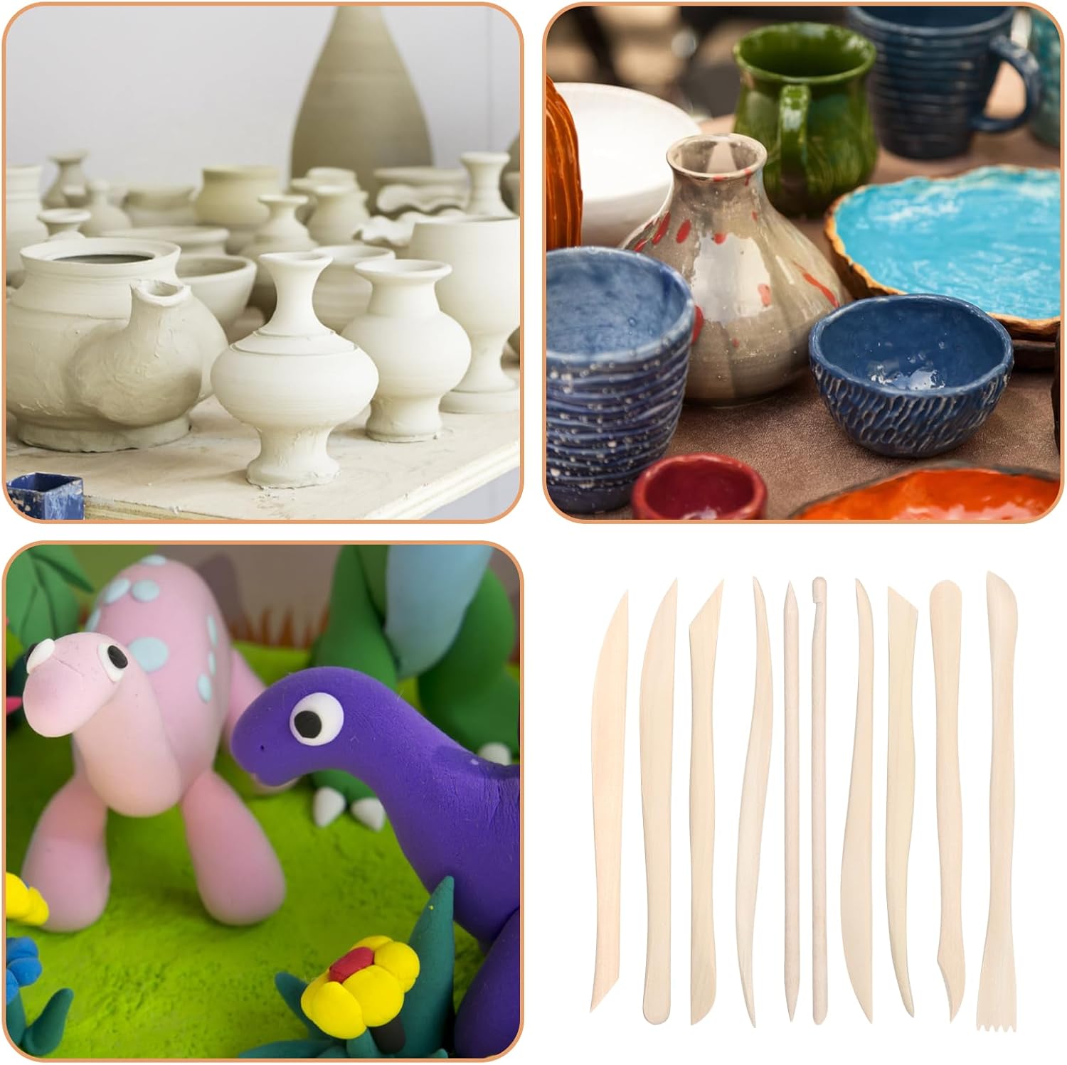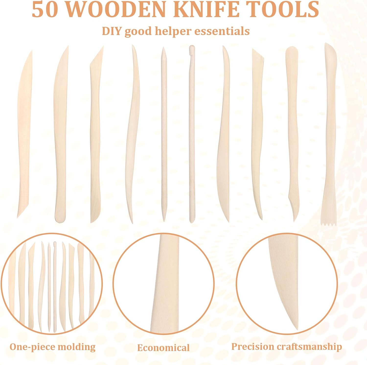 - 【Lightweight & Sturdy】: Crafted from premium wood, this 50-piece double-ended Polymer clay tools kits, 10 pieces per pack, combines durability with lightness. More lightweight than metal clay tools, our pottery clay modeling tool prevents hand strain and adds a natural touch to your DIY projects.