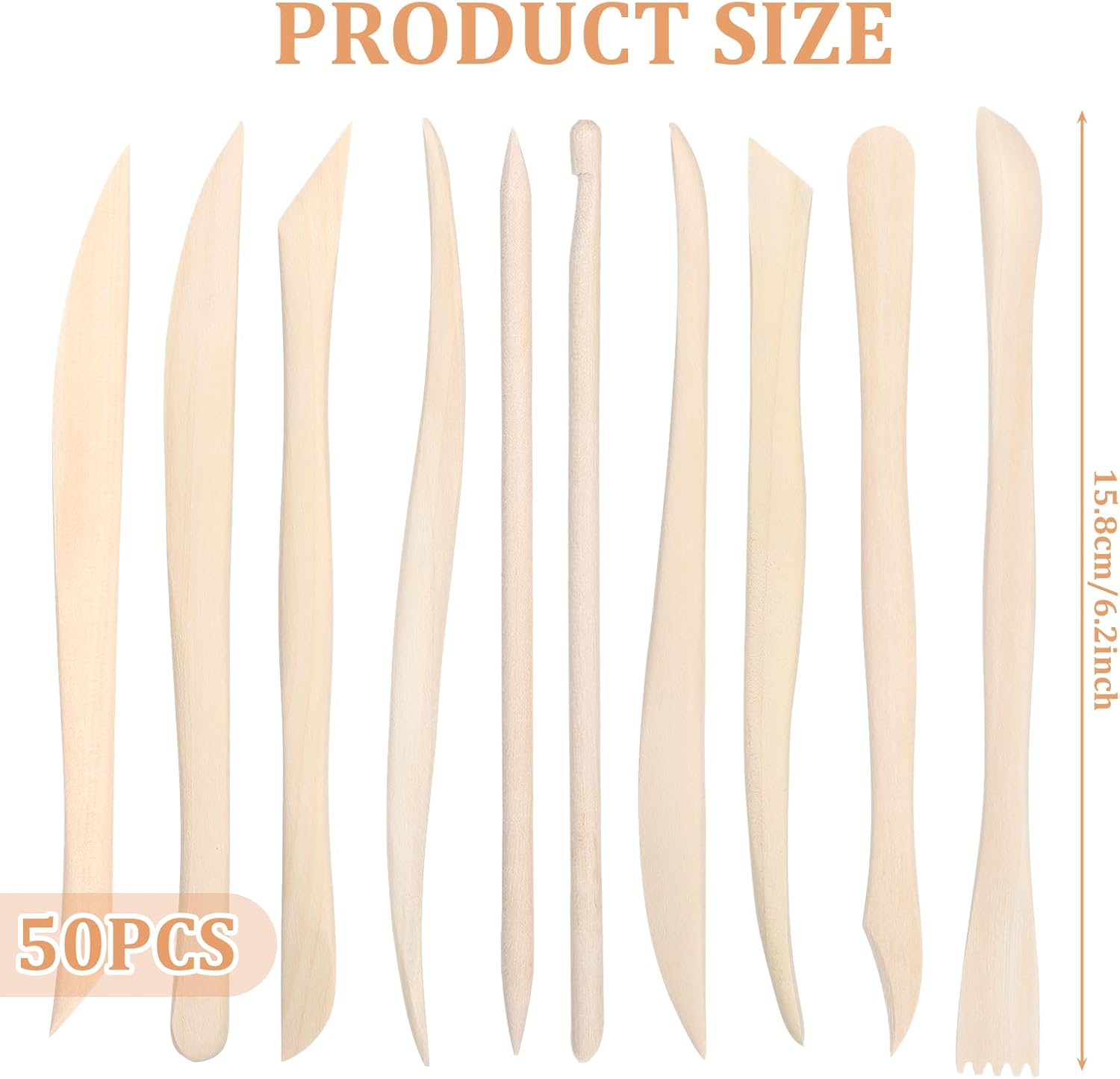 50PCS Wooden Clay Sculpting Tools, 6.2'' Smooth Double Ended Clay Modeling Tools, Polymer Clays Tool Sculpting, Wood Pottery Tool Kit for Ceramics Soap Playdough Carving Supplies