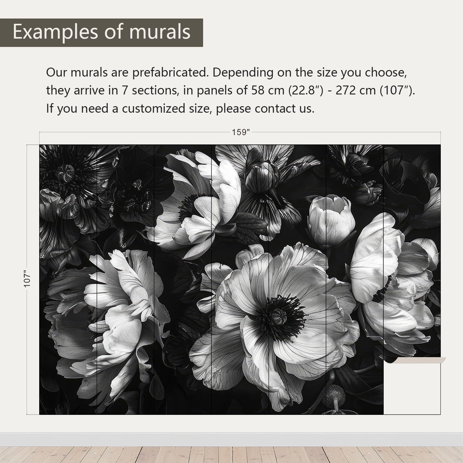 AFZEVEB-Black Peony Floral Wallpaper Vintage Large Flower Wall murals for Bedroom 159"x107"(Not Peel and Stick)