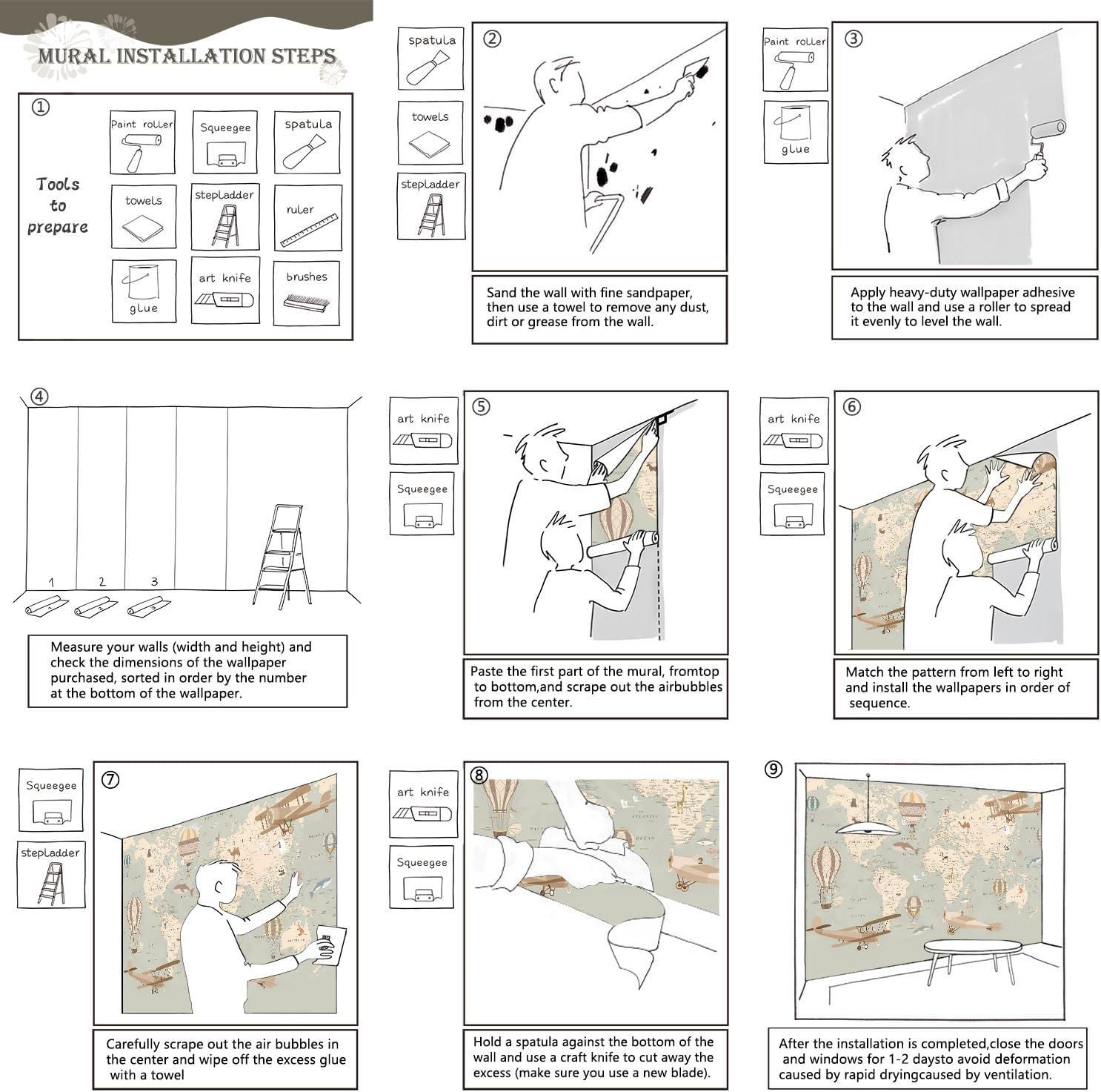 - Tips: Mural can not be peeled and pasted, you need to buy a heavy duty wallpaper glue