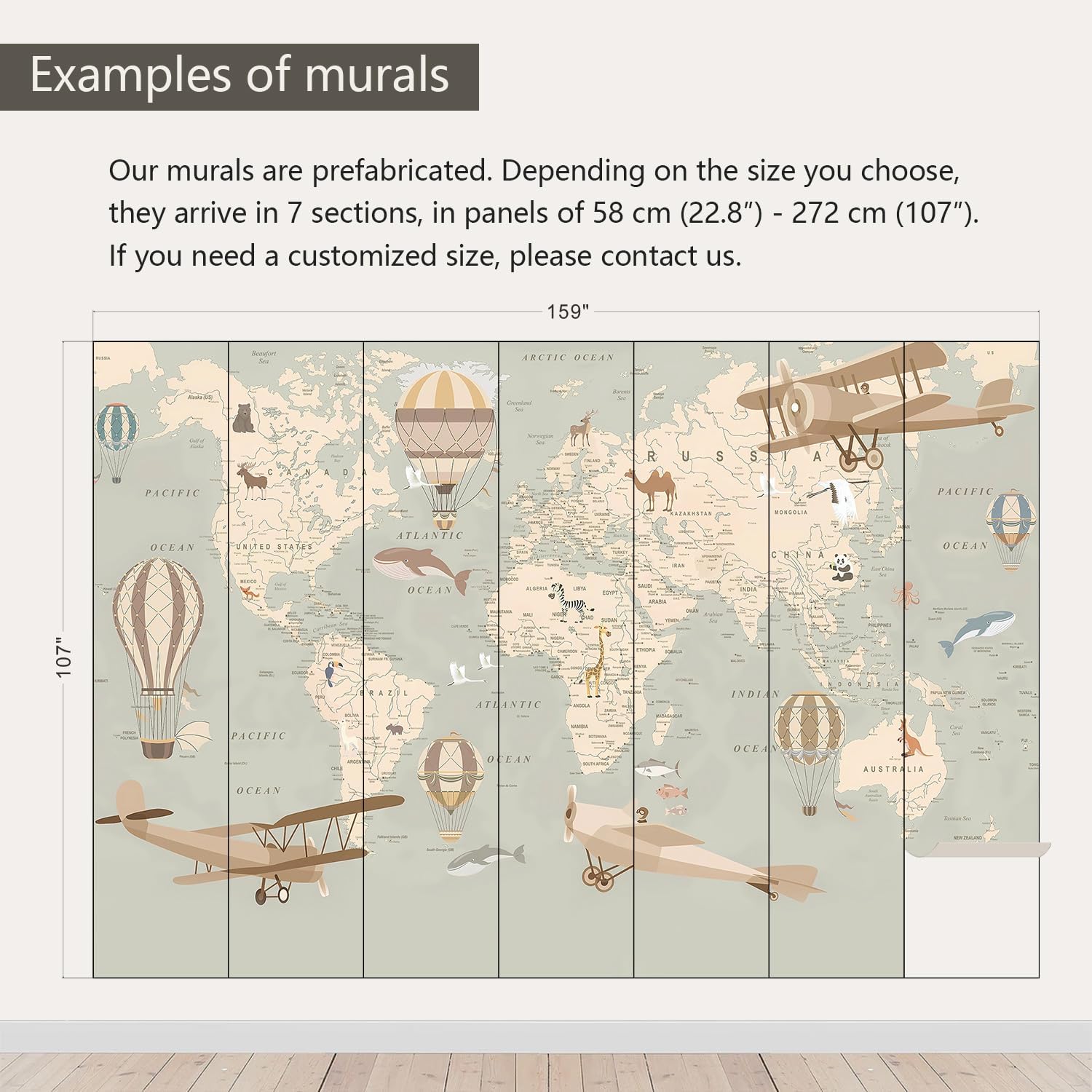 AFZEVEB-Vintage Animal Wallpaper Cartoon Aircraft Map Wall murals for Kids Room 159"x107"(Not Peel and Stick)