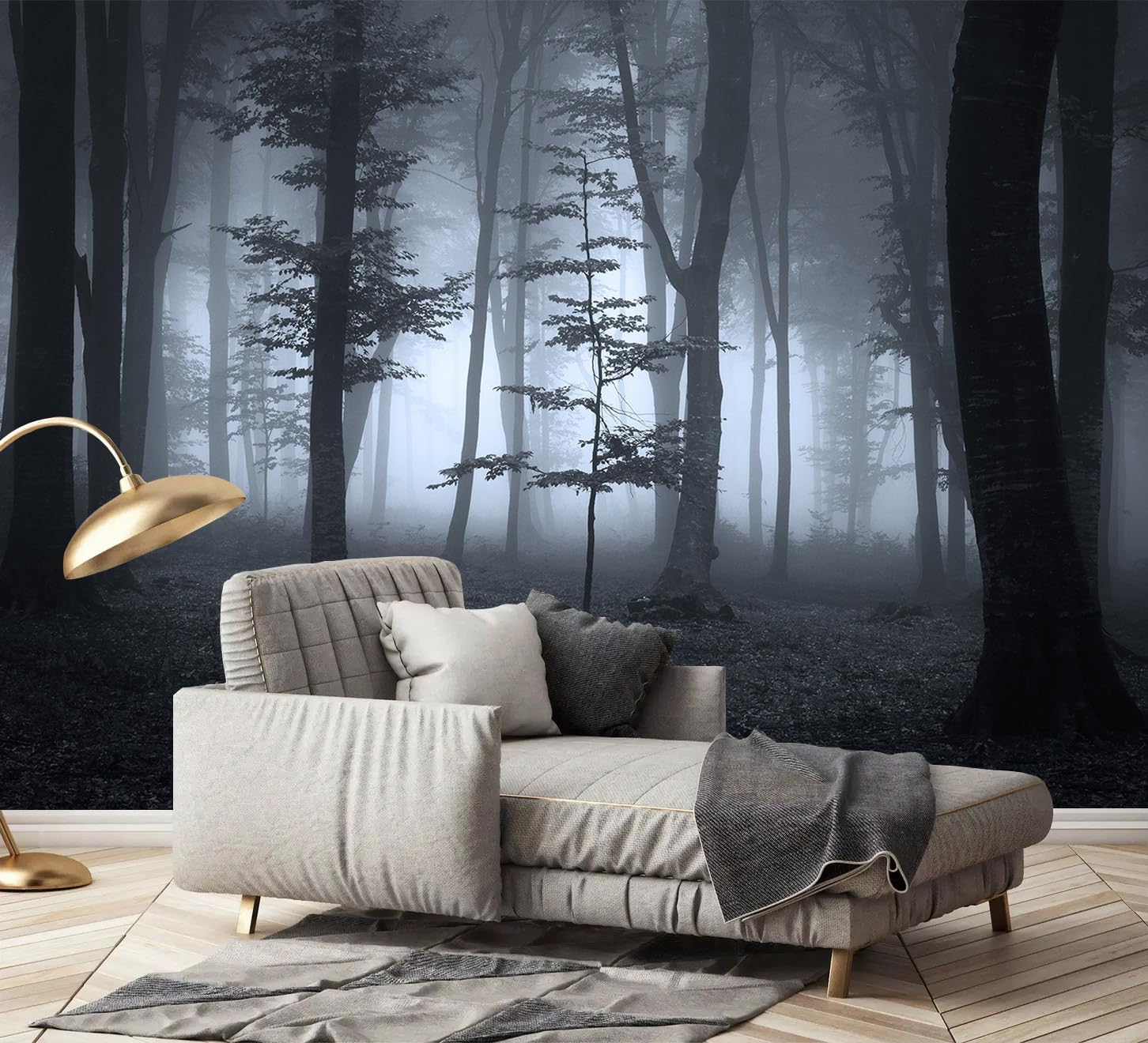 AFZEVEB-Foggy Dark Forest Wallpaper Landscape Tree Wall murals for Bedroom 114"x74"(Not Peel and Stick)