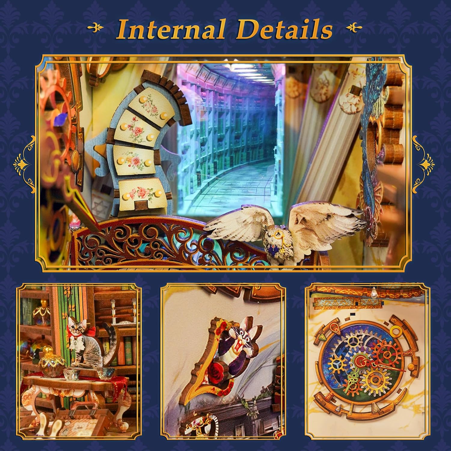 - Magical Library Book Nook Kit: At nightfall, something strange changed in the library. Ancient clocks quietly turn back, magical formations light up, and magical creatures appear here. Someone must have accidentally opened the magical seal in the library.