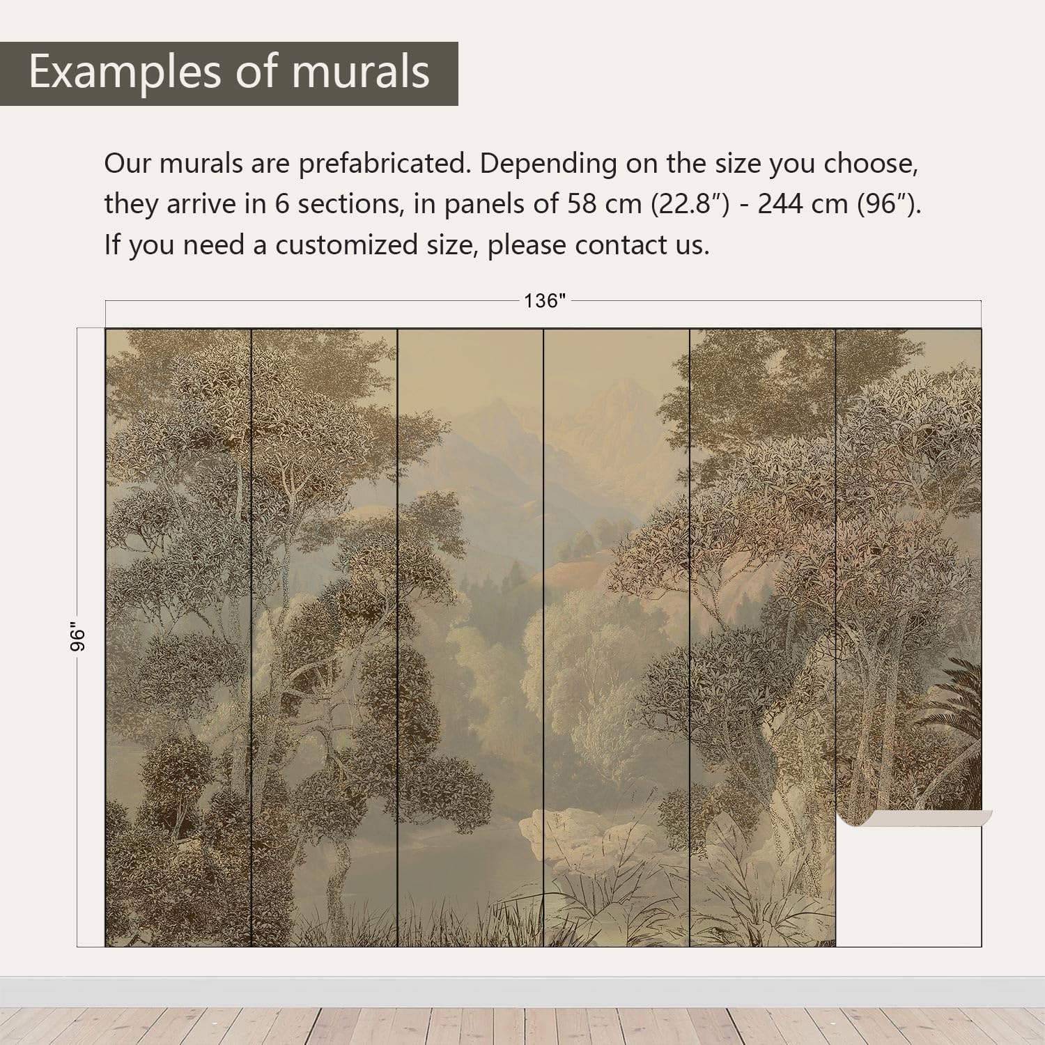 - Size note: Mural measures 136"W x 96"H and is divided into 6 sections, each section is labeled with a number underneath, eliminating the need to overlap patterns when installing.