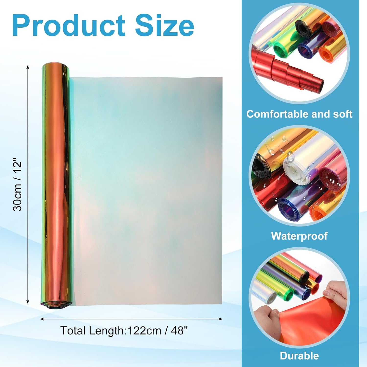 - The holographic vinyl rolls are easy to cut and can be sewn by hand or machine. They can be cut into different sizes according to your needs for use on items and crafts that need to be decorated.
