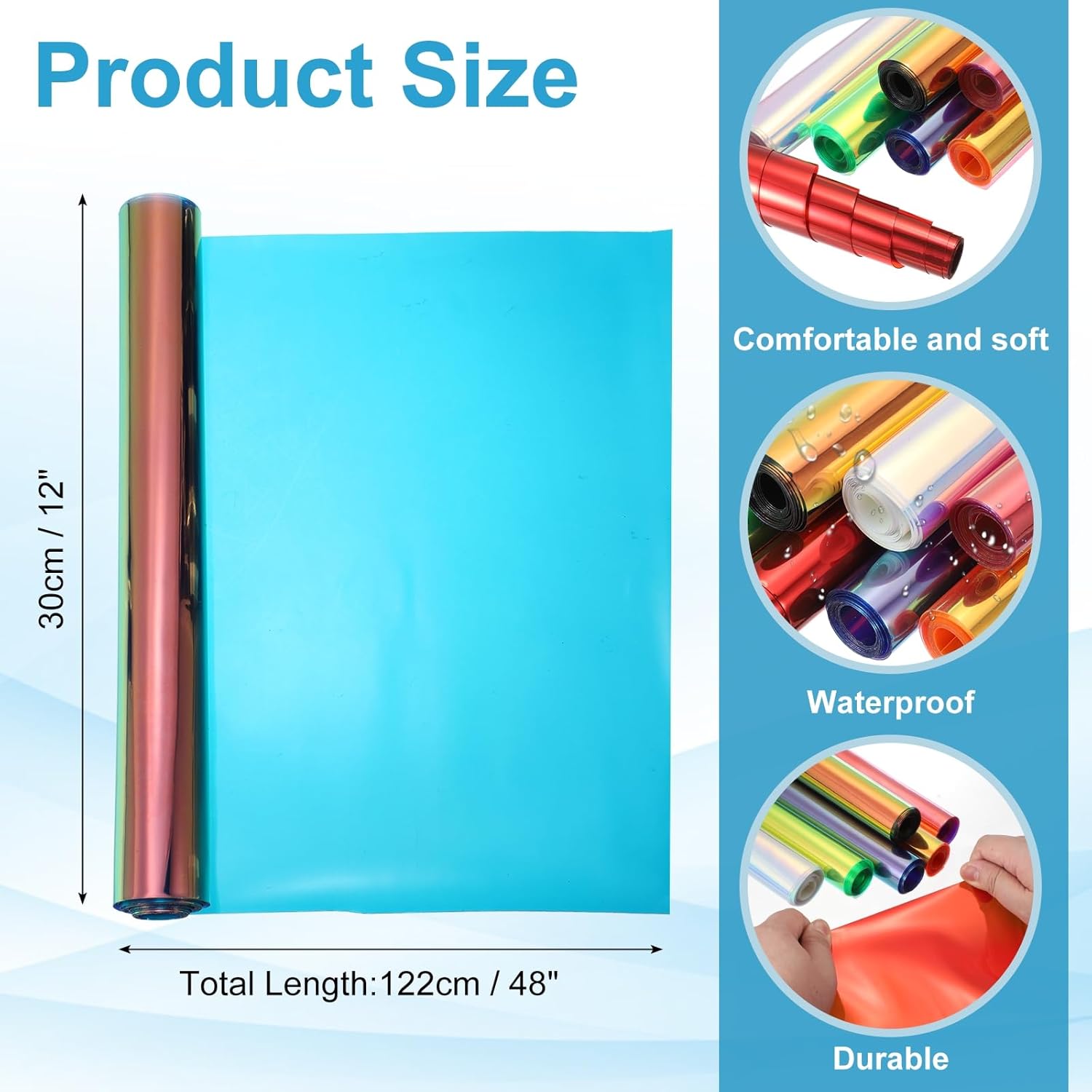- Holographic Vinyl Faux Leather Sheets, Size:30cm x 122cm/12inch x 48inch,Color: Laser Blue Green,Material: PVC,In the package of: 1 x Transparent Vinyl Roll