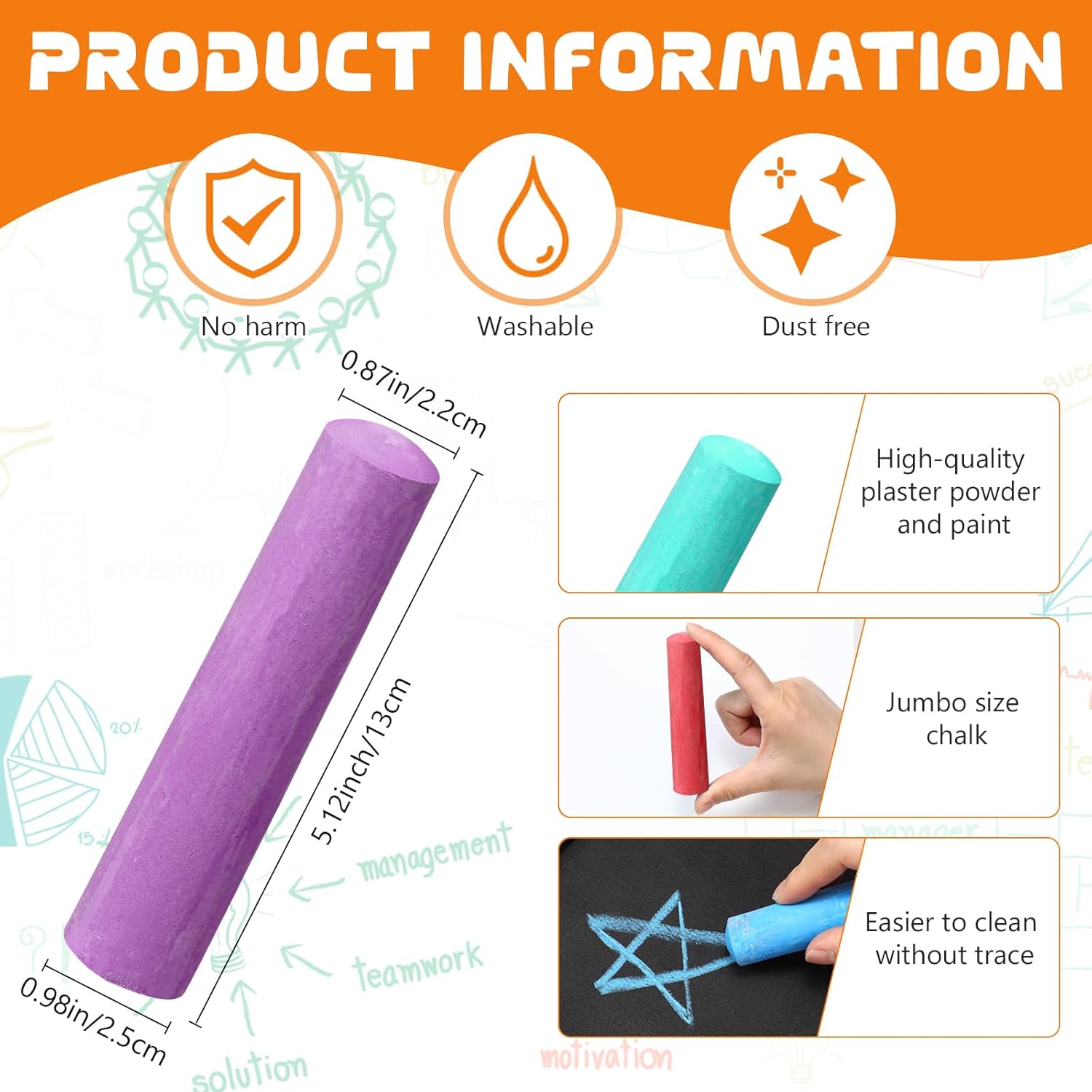 - Versatile Applications: ideal for classrooms, parties, or everyday DIY play, this set of jumbo sidewalk chalk provides endless entertainment. Teachers and parents love the versatility and durability of these chalks for various activities, which will bring you a lot of fun