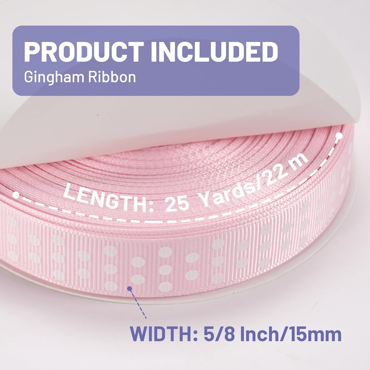 Polka Dot Grosgrain Ribbon 5/8 Inch, 25 Yards Spool Pink and White Dot Craft Ribbon for Christmas Gift Wrapping DIY Crafts Hair Bows Wedding Party Decor Sewing and Home Decoration