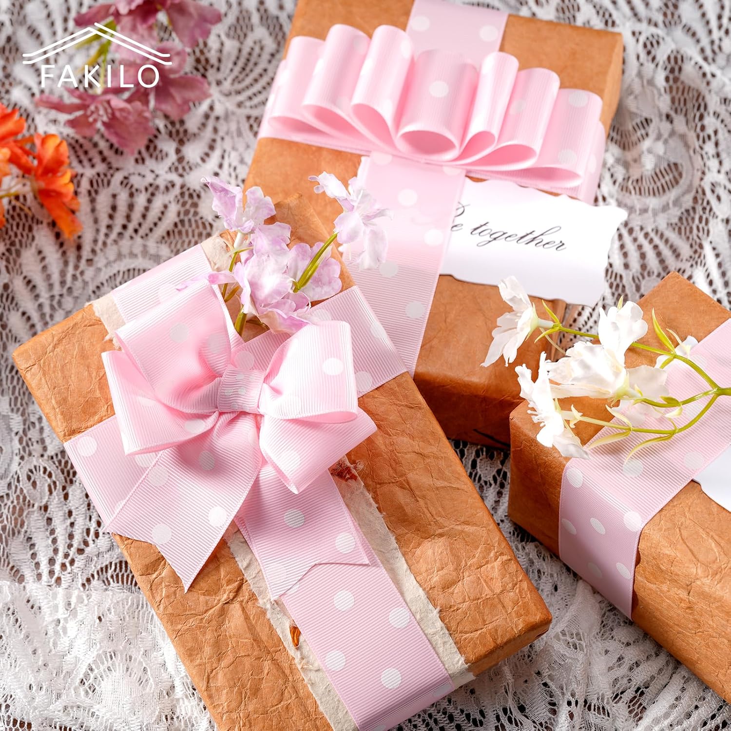 Polka Dot Grosgrain Ribbon 1.5 Inch, 25 Yards Spool Pink and White Dot Craft Ribbon for Christmas Gift Wrapping DIY Crafts Hair Bows Wedding Party Decor Sewing and Home Decoration
