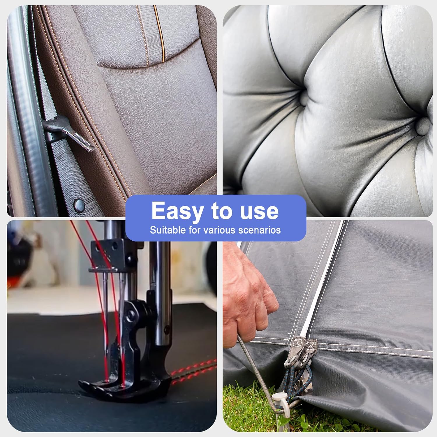 - Versatile Use: Perfect for sports shoes, leather goods, automotive interiors, home decor, cushioned furniture,bookbinding, luggage, wallets, outdoor gear, parachutes, tents, beadwork, sails, and more. Particularly well-suited for protective footwear, sofas, saddles, vinyl, and DIY leather crafting