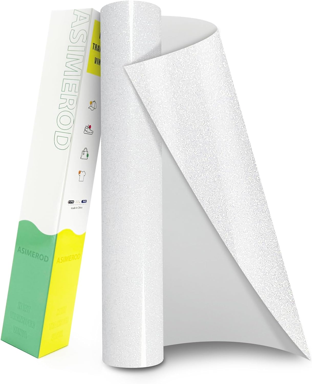 Glitter HTV Heat Transfer Vinyl Rolls- 12" x 10ft. Glitter Iron on Vinyl for DIY T-Shirts, Glitter for All Cutters, Heat Transfer Vinyl (White)