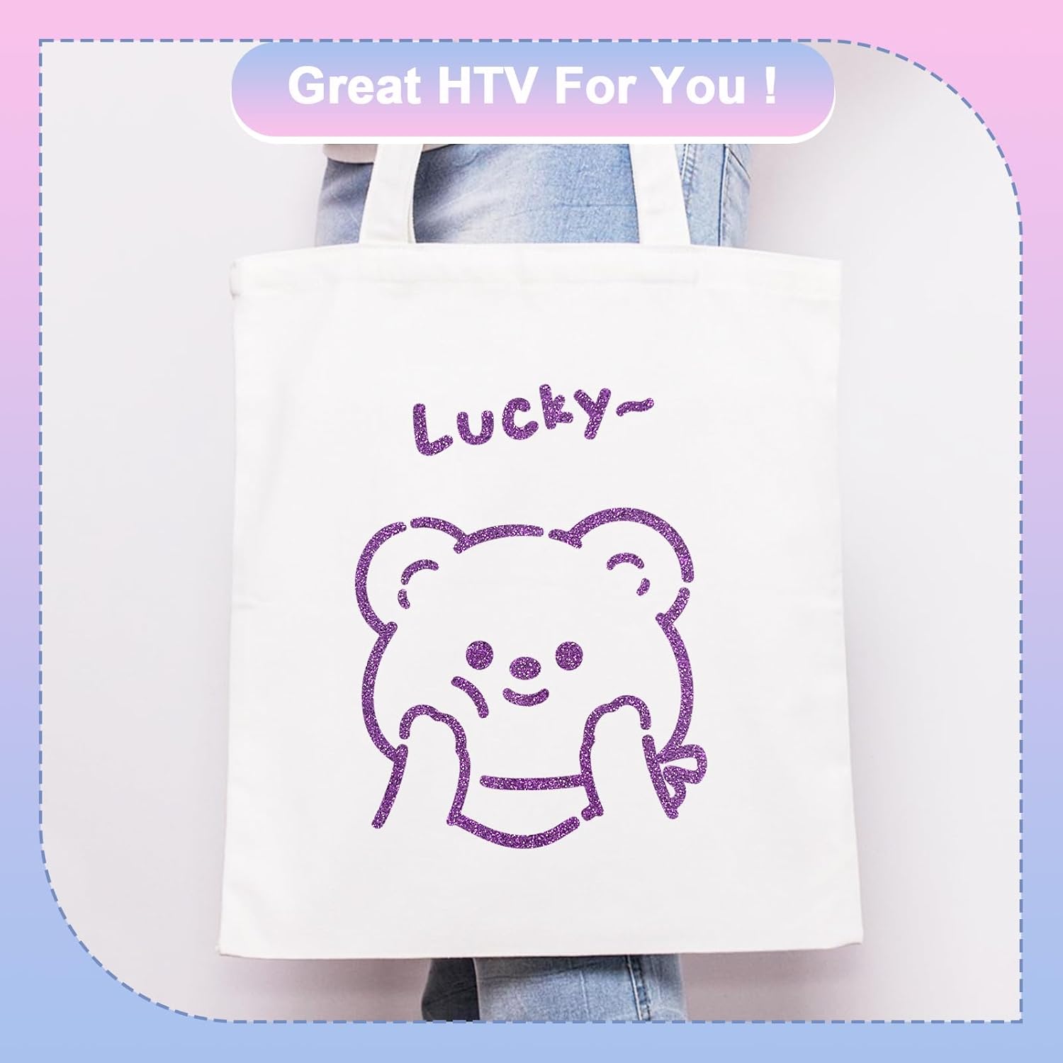 - 【Multiple uses】 Glitter HTV Not just for shirts, this vinyl can be used on a variety of fabrics and items such as tote bags, hats, and more. Let your creativity run wild