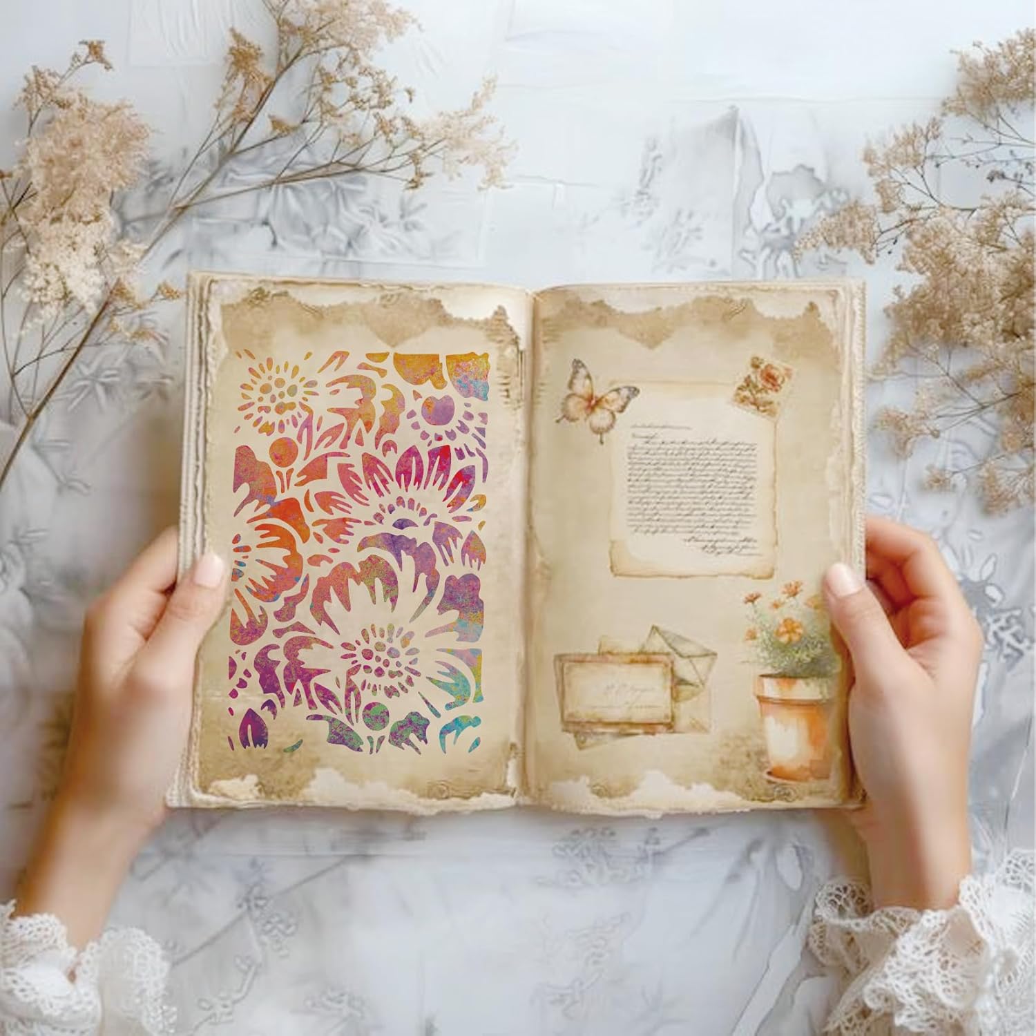 - Package including: texture stencils for painting include16 pieces craft stencils, and each stencils is measure 5.5 x 8.26 inch for painting on canvas art supplies.